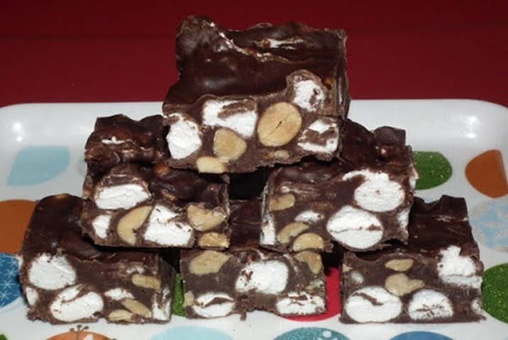 This is a great fudge hand made by me with hershey dark chocolate, peanuts, raisins & marshmellows. It is creamy & yummy like all my fudges, Great to enjoy any time hand made by me! PLEASE TELL ME IF YOU DO NOT LIKE RASINS AS i CAN REMOVE THEM. THANK YOU BOB 1 1/4 lb Dark Chocolate Rocky Road Fudge