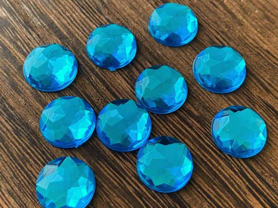 12mm Aqua Multifaceted Rhinestone Resin Cabochons -10Pcs L Earring Making Jewelry Supplies, Cabochon Diy Supply Charms