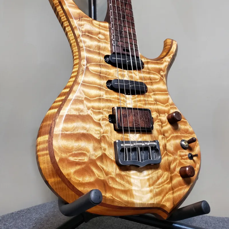 Barlow Guitars HeronWoods:Chocolate Quilt Maple TopMadagascar Rosewood MiddleRoasted Curly Maple BodyMadagascar Rosewood NeckMadagascar Rosewood Fr…