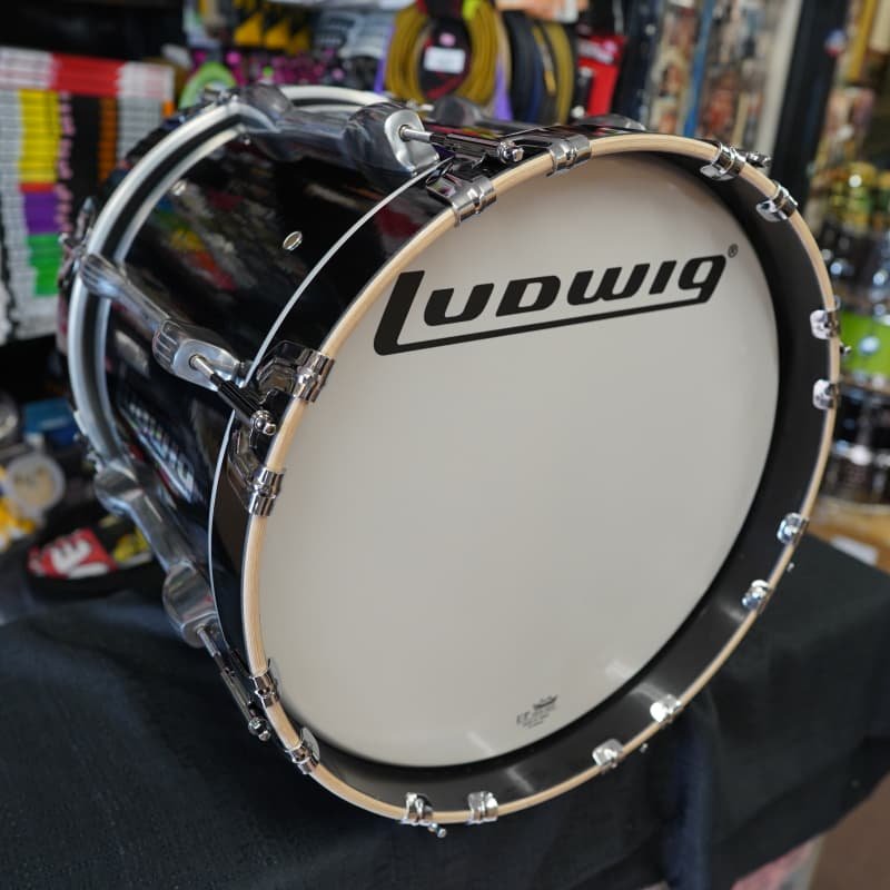Drum City Guitarland ~ Family Owned Drum & Guitar Shop Since 1965Excellent ConditionUSA Ludwig 16″ Marching Bass Drum Jet Black Wrap Pure Maple…