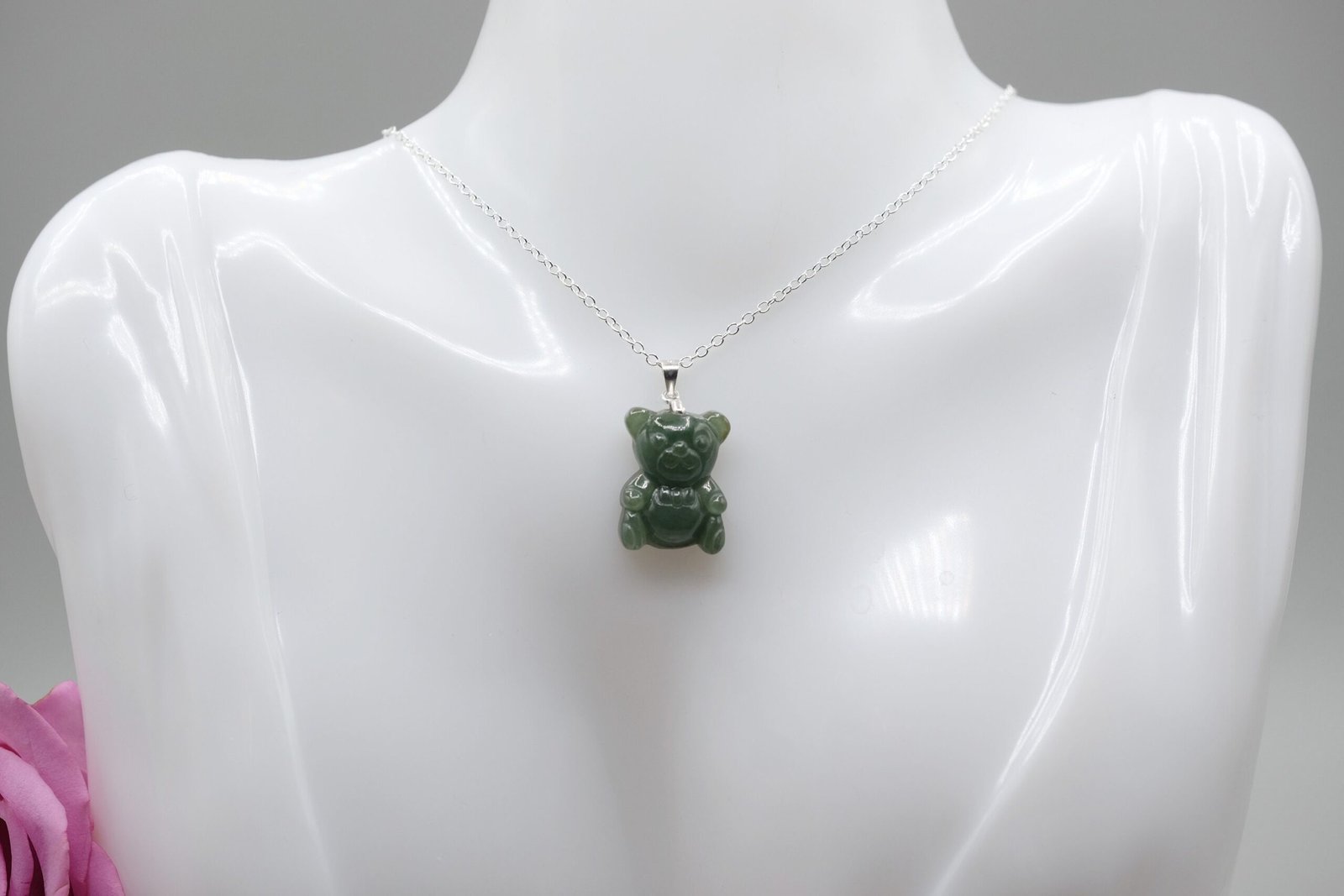 Forest Green Jade Teddy Bear Necklace Untreated, Natural Jadeite 925 Sterling Silver Bail & 18” 925 1mm Italy Box Sterling Silver Chain Mannequin is not life-size. Pendant will look smaller on your neck. Pendant size: 20mm or 0.7” Derived from the Spanish word “piedra da ijada” meaning “stone of the flank,” jade is believed to bestow the wearer with many virtues, notably wisdom, purity, long life, & good health. Jade also increases love & nurturing, it keeps the wearer from harm & brings harmony. Jade attracts good luck & friendship. It stabilizes the personality & promotes self-sufficiency. 20mm Jadeite Natural Forest Green Jade Teddy Bear 925 Sterling Silver Pendant Necklace