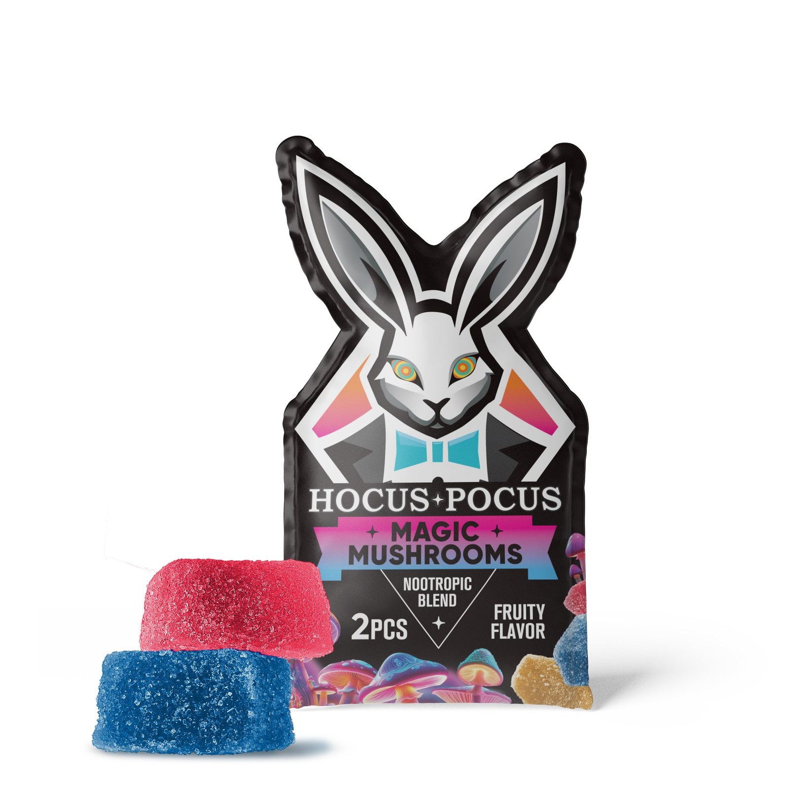 Brain boost, candy-coated. These nootropic mushroom gummies from Hocus Pocus combine cognitive support and mood elevation in a flavorful Fruity Mix of Fruit Punch, Mango, and Apple. Each pouch contains 2 gummies, each with 22.5mg of functional mushroom blend.Functional mushrooms have long been valued for their adaptogenic and nootropic properties. While these mushrooms are not psychedelic, they are celebrated for their ability to support focus, mood balance, and overall wellness. It’s nature’s way of boosting your brain-gently and effectively.Crafted with care and verified through third-party lab testing, these gummies deliver magic backed by science.