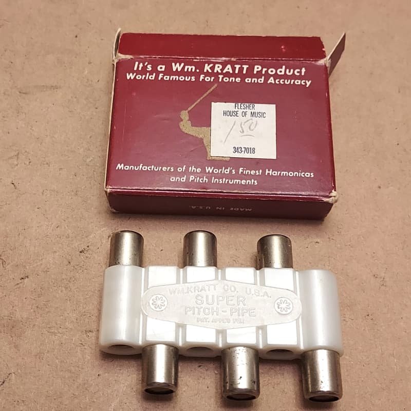 Wm. Kratt SN 10 Spanish Guitar Pitch Pipe. Nickel tubes, bronze reeds.Light finish wear / patina as pictured.All notes are clear, no buzzing.