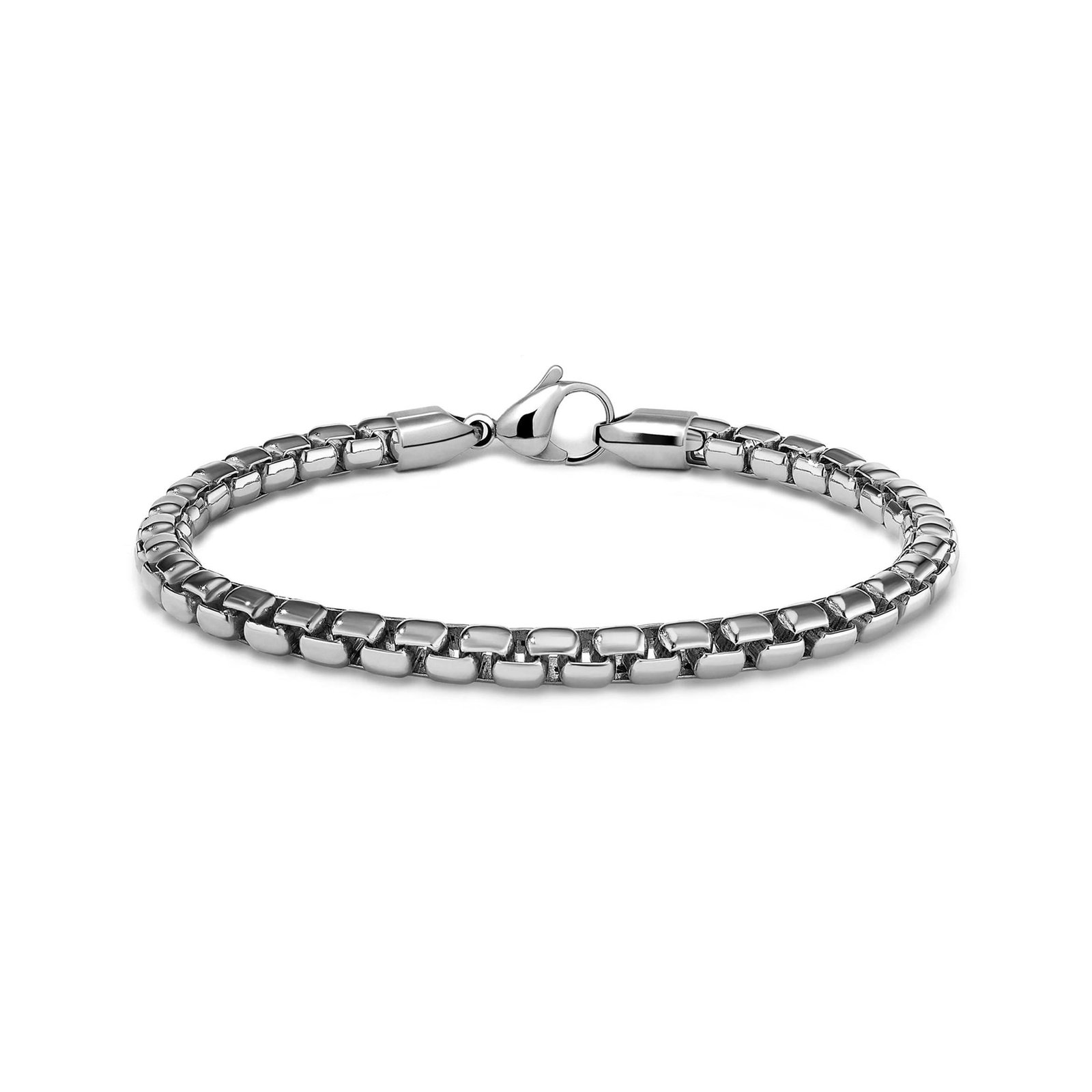 5mm Box Chain Bracelet in Stainless Steel By Taormina Jewelry