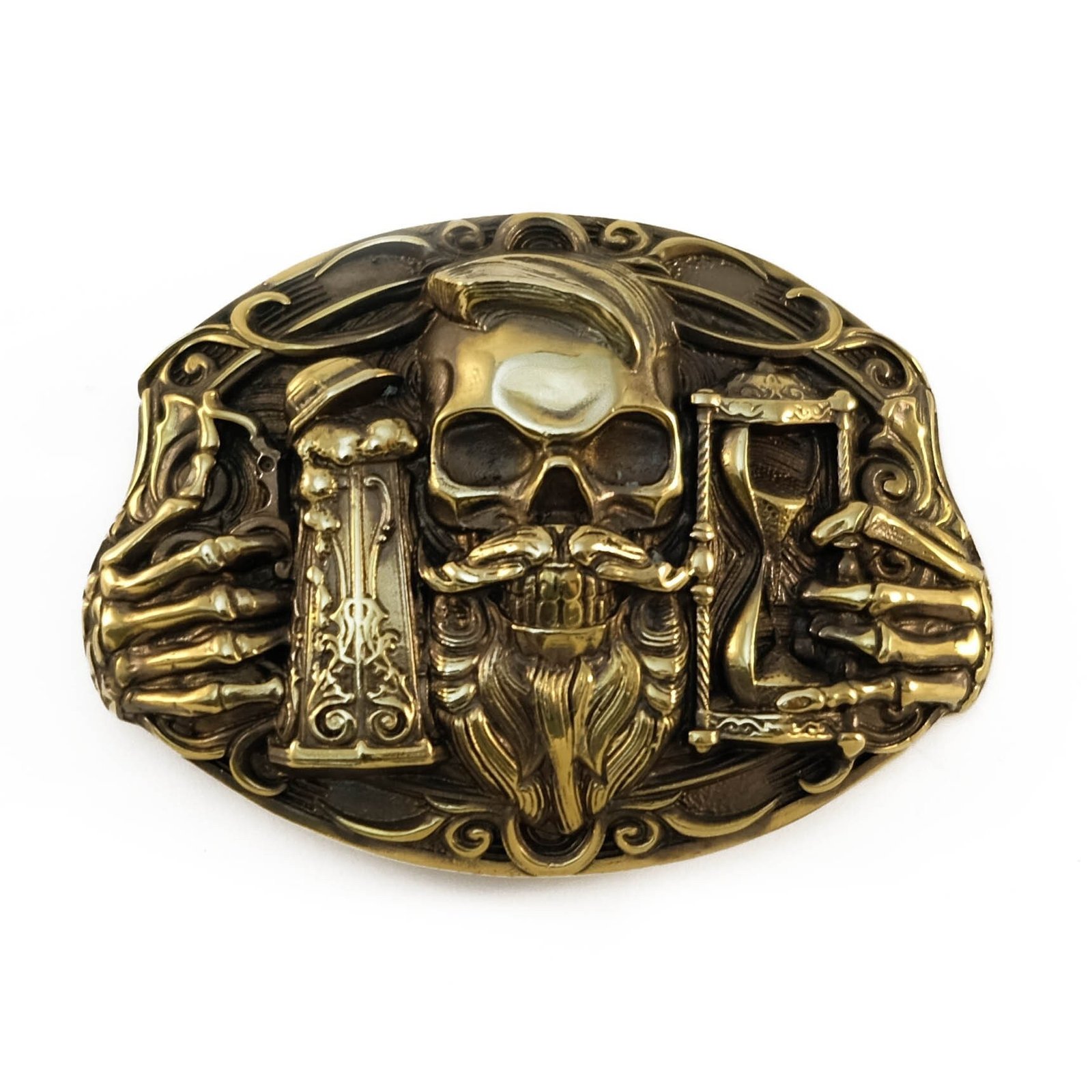 Belt Buckle Beer, Beer Fans Belt Buckle, & Skull Brewers Gift, With Mug, Skeleton Solid Brass