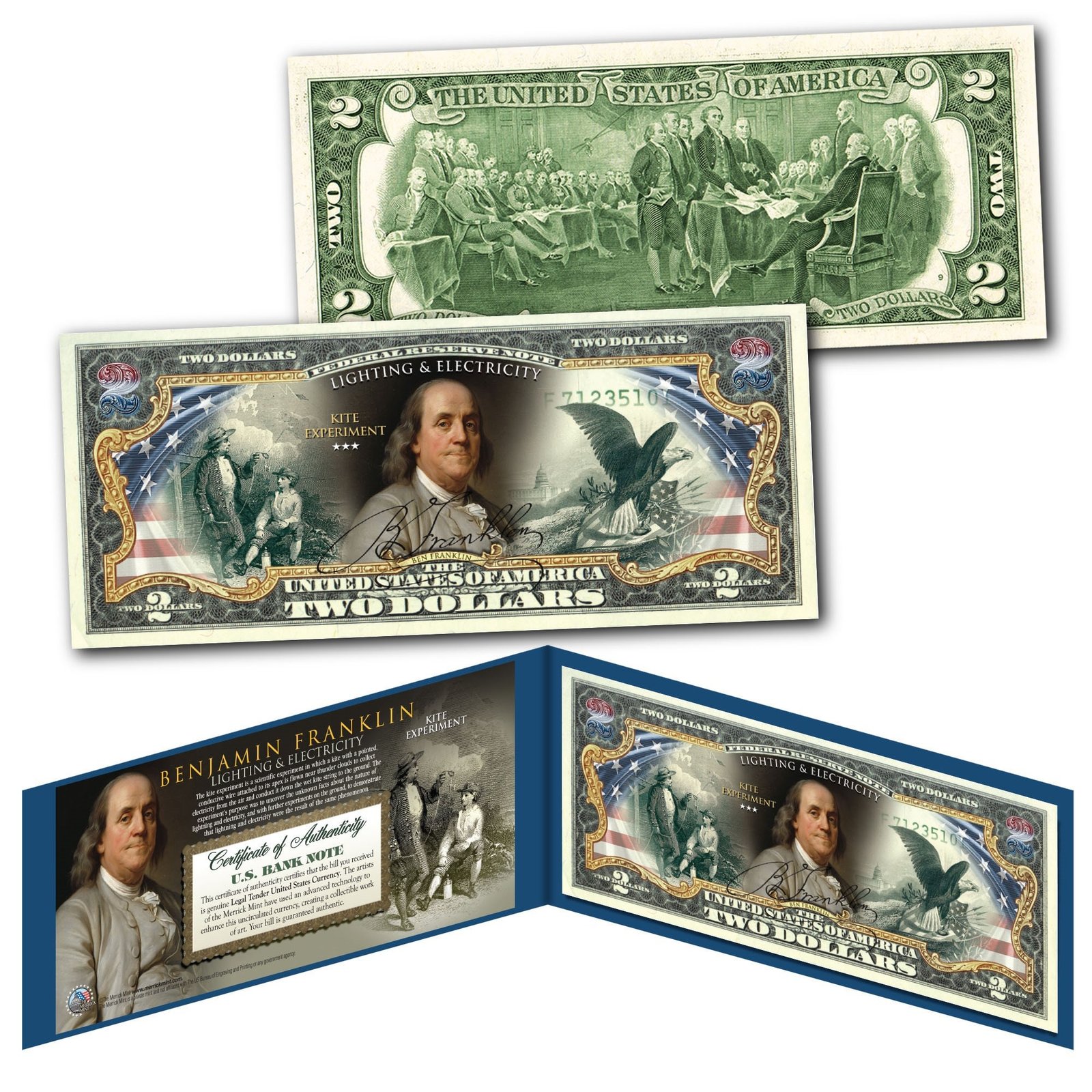 Ben Franklin Lightning & Electricity Kite Experiment Two Dollar Bill On Genuine U.s. Currency – Ships Fast & Free To