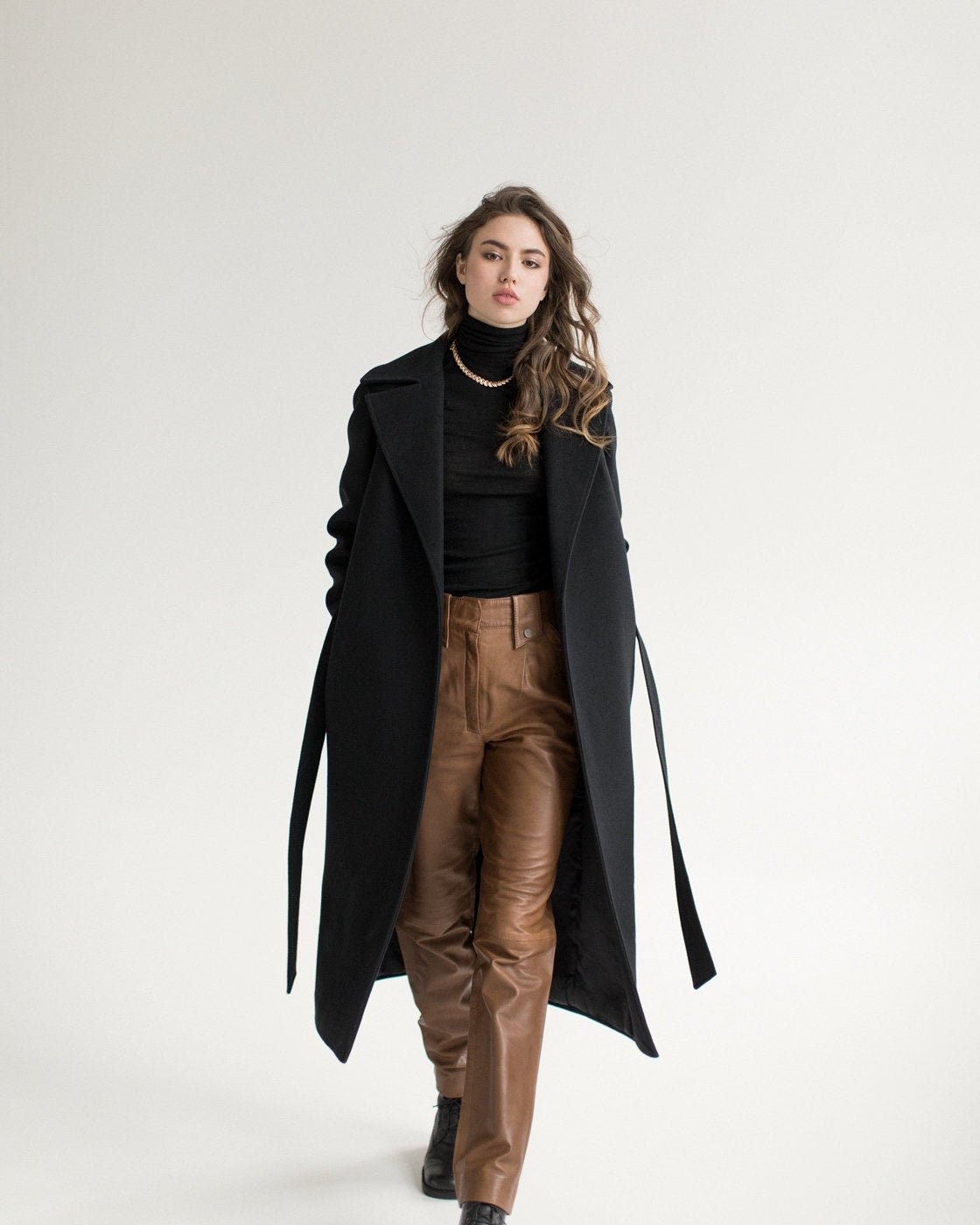 Introducing our regular fit wrap coat in a luxurious wool blend. Our fall coat is a great option for those who are looking for a silhouette that is slightly snug around the waist. The notch collar add elegance to the whole look, while the included belt accentuates the waist line, creating an eye-catching look. Two functional pockets at the side seams provide storage for your essentials. We can make our coats warmer to suit for a cool winter & weather below 0oC. If you want us to do this, PM us, & we will reply you as soon as possible. Regular fit Wrap silhouette Notch collar Belt Two pockets at the side seams Soft wool 100% Lining 100% viscose Model size: 168cm/46kg US2/EU34 Model wears: US2/EU34 INSTRUCTIONS Dry cleaning only Do not bleach Medium iron If you need extra thermal insulation for temperatures below 0oC you can order it through this link: https://www.etsy.com/listing/665623152/additional-warm-insulation-for-the-coat We make all coats to order requiring about 7 – 10 working days for production (excluding shipping). After the order we’ll send you a list of needed measurements with instructions on how to take them. Email us if you want to adjust the neckline or style details. Contact us with your measurements & we’ll help you find the perfect size Please include your full address, name, & phone number when ordering Custom colors & designs available on request Black Wrap Coat – Autumn Wool Blend Overcoat Melissa