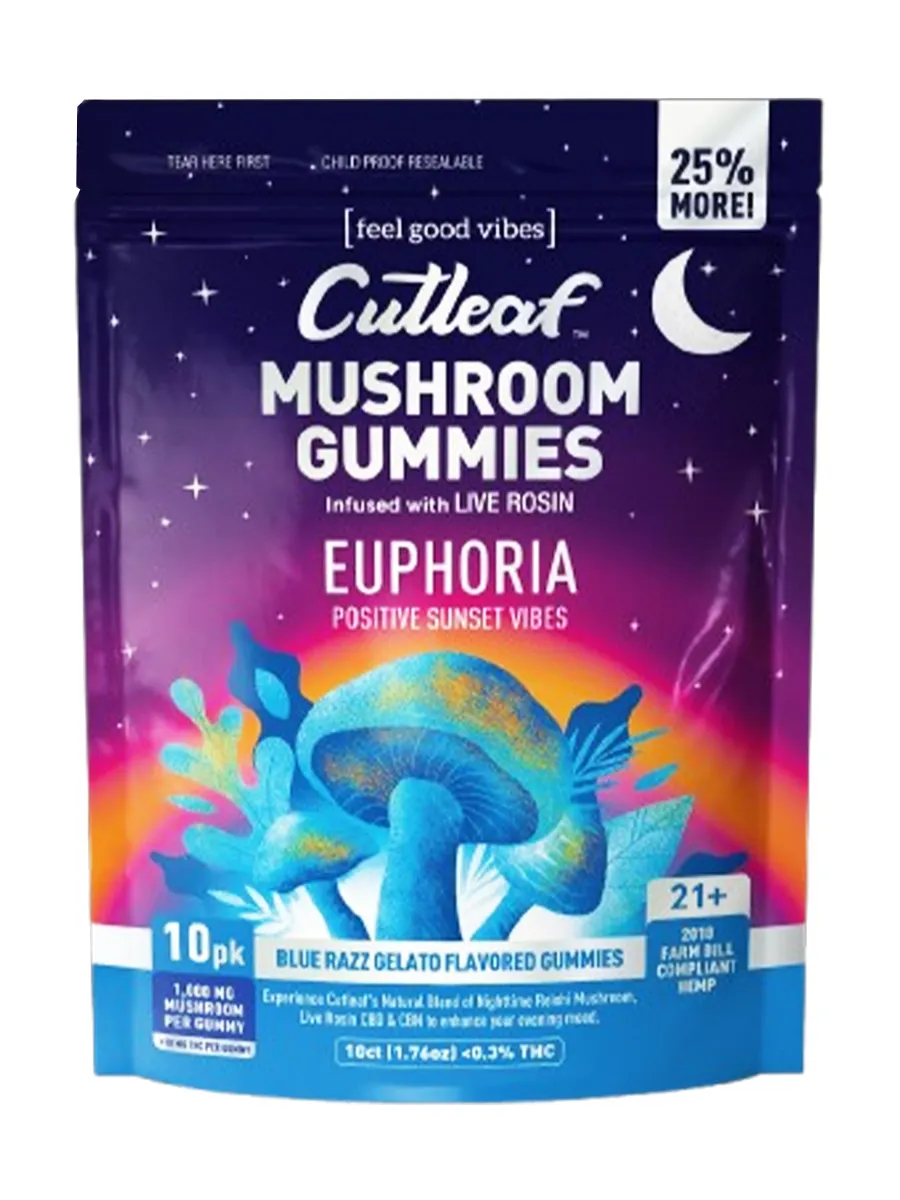 Blue Razz Gelato Cutleaf Euphoria Mushroom Gummies 1000mg 10ct