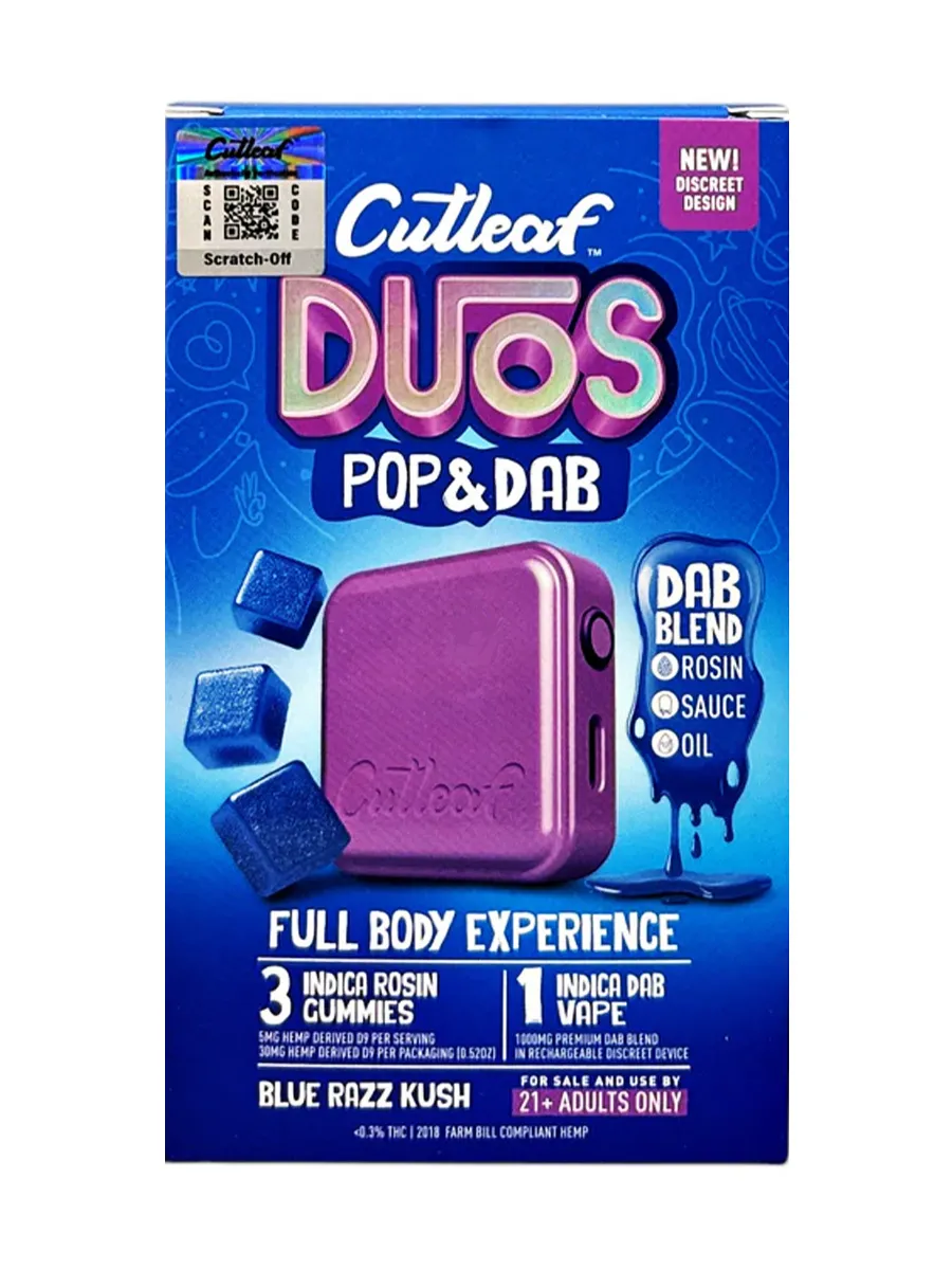 Blue Razz Kush Cutleaf Duos Pop & Dab Vape 1ct x Gummies 3ct