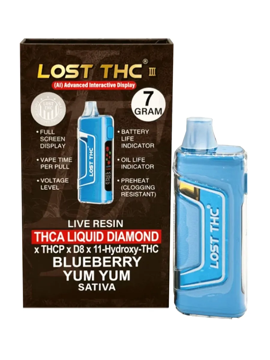 Blueberry Yum Yum Lost THC V3 Live Resin Liquid Diamond Disposable 7G