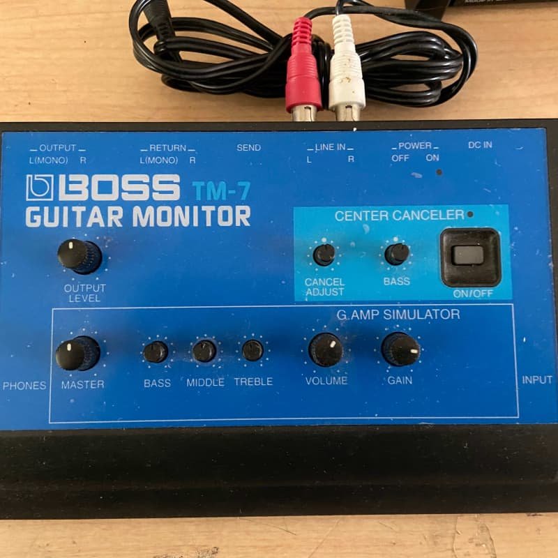 BOSS TM-7 Guitar Monitor; a personal guitar monitor/simulator that lets you pipe in your favorite audio and play along with. The TM-7 has a Send &a…