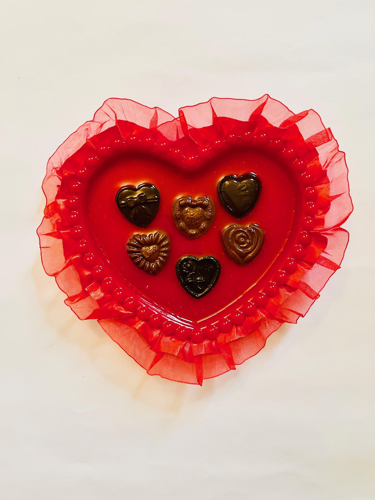 Life is like a box of chocolates, you never know what you’re gonna get! These adorable, kitschy little numbers are the perfect gift to give your sweetie or, gift to yourself! Inspired by a traditional valentines day box of chocolates these little babies come equipped with faux candy under a layer of resin & frilly trim around the edge. Perfect dish for your jewelry or other small bits & bobs. Measurements: 5.55″x 6.30″ (not including the the lace trim) MADE TO ORDER Please allow up to 12 days to create not including shipping. Colors can appear differently due to screen settings, by purchasing you acknowledge that you understand. Please note that this sculpture is made by hand. Small imperfections are normal. By placing an order you acknowledge that you understand this is common in handmade products but I will never send you an item that I myself would not be happy receiving. Box Of Chocolates Trinket Dish/ Fake Food/ Dopamine Decor/ Food Maximalist Valentines Day Gift/ Art
