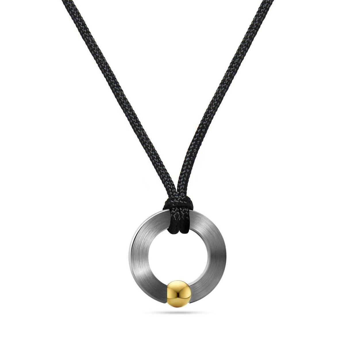 Brushed Stainless Steel Pendant Gold Sphere On Black Cord