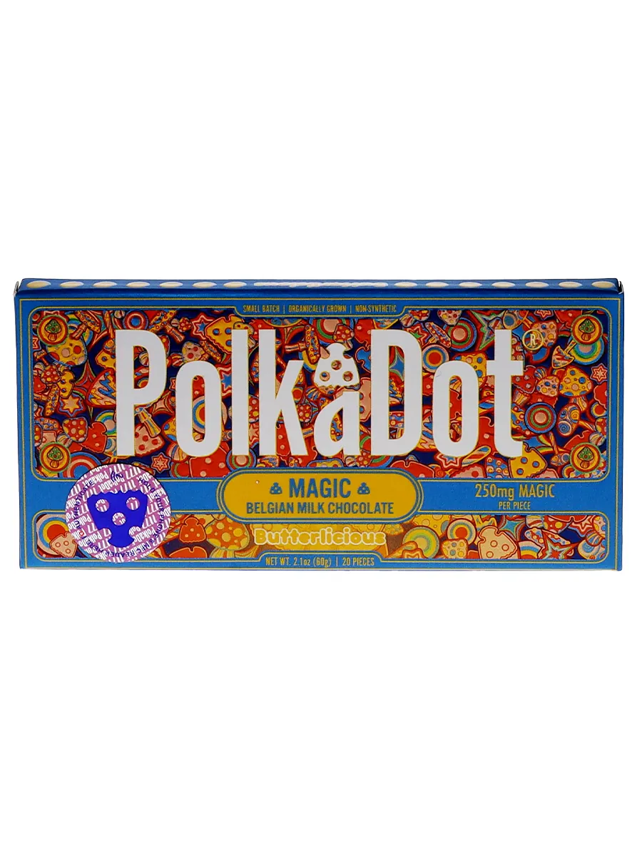 Key Features: Premium Belgian Milk Chocolate – Smooth, creamy, and rich in flavor. Buttery Caramel-Like Taste – A luscious, melt-in-your-mouth experience with a hint of sweetness. 250mg Magic Mushroom Extract – A mild yet uplifting dose for a balanced experience. Nootropic & Adaptogenic Benefits – May help support relaxation, focus, and overall well-being. Easy-to-Dose & Discreet – Pre-portioned squares for controlled and convenient consumption. For those who love creamy milk chocolate with a buttery twist, Butterlicious PolkaDot Magic Mushroom Belgian Milk Chocolate is a must-try. Order now from our online headshop, Olofly, and treat yourself to an unforgettable chocolate experience!