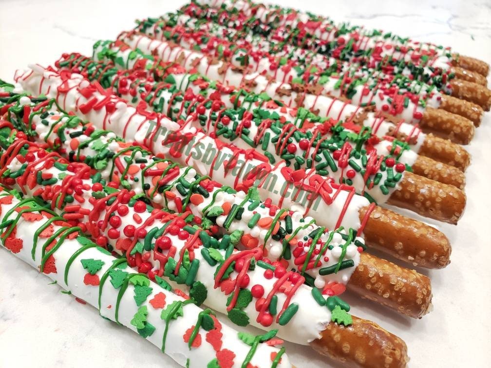 Christmas Chocolate Covered Pretzels Holiday Treats, Favors | 12 Pcs