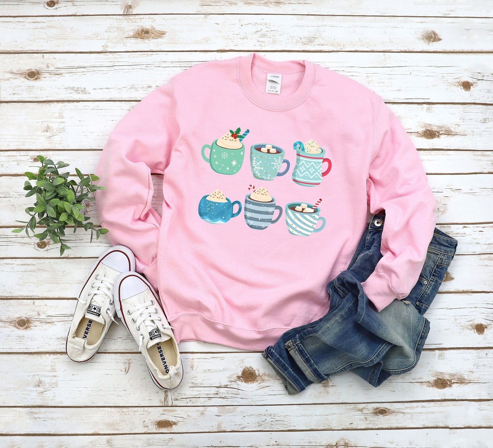 Christmas Hot Cocoa Sweatshirt, Winter Warm Drinks Sweater, Cute Holiday Pullover, Santa Chocolate Festive Party Sweater