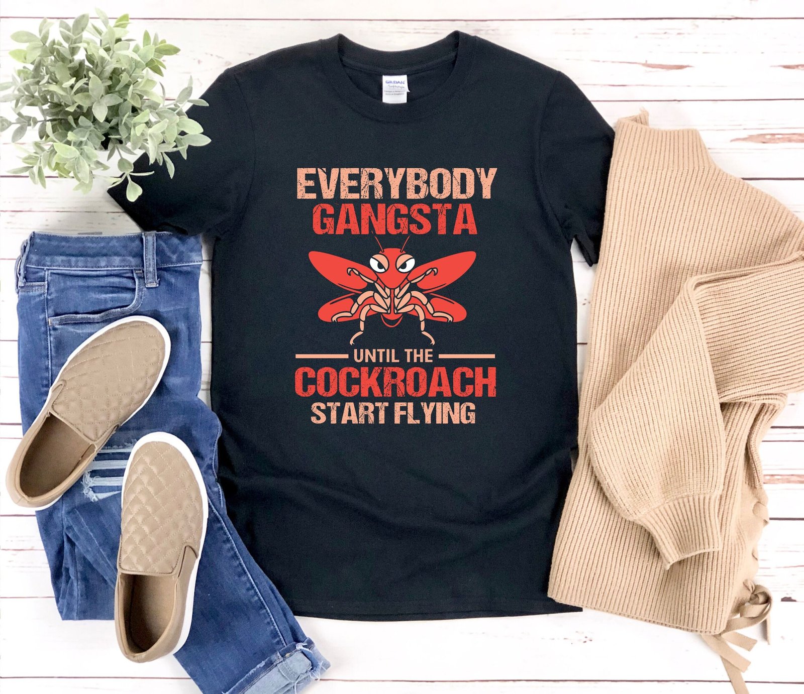 Cockroach Shirt, Gifts, Everybody Gangsta Until The Start Flying, Meme Funny Cockroach