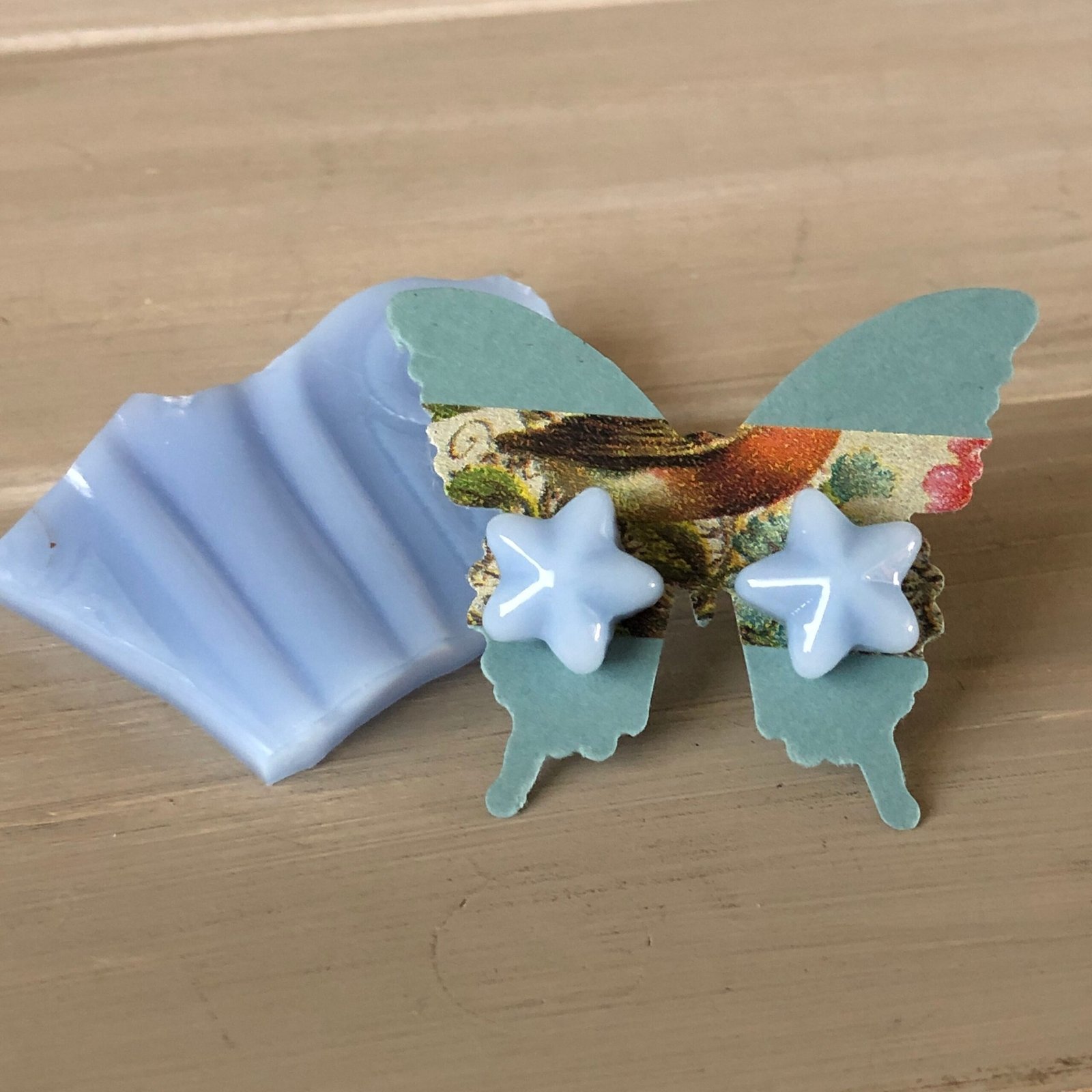 Made-to-order please allow 2-3 weeks to create before mailing, though I tend to have them ready sooner ???? Yes! You too can have “stars upon thars”! This listing is for ONE pair of Delphite star stud earrings. Please select size preference at checkout. These unique star stud earrings have been created from a broken Delphite saucer! A perfect gift for a Delphite collector… even if that someone is you! Smallest stars are approximately 12mm round. The slightly larger pair is approximately 13mm round ???? Would you like this style in another (opaque) color? Just ask! If I have the color, I’m happy to create a special set just for you! Unfortunately, transparent glass shows the ear pad underneath & does not work well for this design. I create these recycled glass stud earrings in my lampworking studio, one at a time. Each glass stud is melted & formed directly on non-allergenic titanium posts, then annealed in my kiln overnight for strength & durability. The ear nuts are now titanium too. You will receive a pair very similar to the ones in the photos. Individually handmade, no two are exactly alike, but all are close. Wouldn’t it feel good to know you’ve saved broken glass from going to the landfill? Yay you! If you have any questions, please don’t hesitate to contact me. My beads are created in a process known as lampworking. It involves using a propane/oxygen torch that reaches extreme temperatures to melt glass. The molten glass is wound onto a stainless steel mandrel that has been coated with a liquid clay material. Shaping, as well as all the surface textures & decorations are applied while the glass is molten. Completed beads are then placed in a digitally controlled kiln, usually overnight. Kiln-annealing reduces stress in the bead for strength & durability. Each bead hole is then cleaned under water with a diamond tip Dremel bit. Thank you for looking! Delphite Star Stud Earrings, Sold Per Pair, Post Recycled Glass Vintage