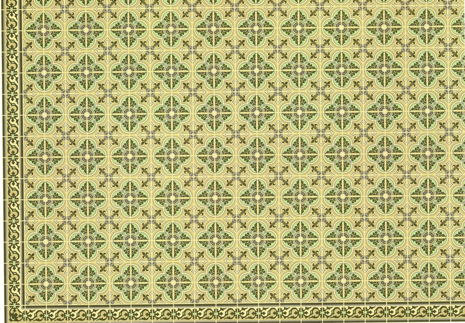 Dollhouse Tile Wallpaper Victorian Beige, Green 112 Scale Itsy Bitsy Miniature