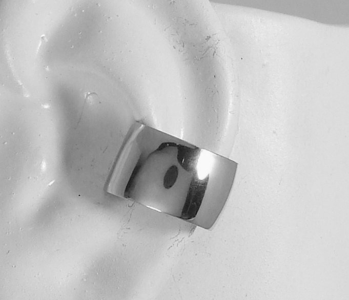 This Domed non-pierced version Ear Cuff is handcrafted in solid Sterling Silver material that is 10 mm (3/8 inch) wide & formed into a 11 mm (1/2″) diameter earcuff. It has a slight curvature polished to a mirror finish that attractively reflects light. The dark spots on the pictures are a reflection of the camera & are not on the ear cuff. NOTE: This listing is for a NON-PIERCED Ear Cuff WITHOUT a post soldered on for a piercing. For a COMPLETE SELECTION of our regular full size NON-PIERCED EAR CUFFS see: https://www.etsy.com/shop/earcuffs?section_id=7016826 IF YOU WANT A PIERCED CONCH version WITH a POST soldered on, please see our other shop sections noted below.) Shipping Tip: ADDITIONAL items ship FREE The Ear Cuff is adjustable to fit & can be worn on either ear, but is sold as a one piece single earring style. Slip on at the top back of the ear lobe. Open cuff if necessary. Slide down, twisting around & in toward the inside part of the lobe. The cuff rests loosely on the lower ridge of the ear. To remove, lift ear cuff up & twist out. Cuff it! A unique single earring concept for those who want to add an earring’s beauty & style without adding a piercing. Now available in Sterling Silver at a great price! For alternative MINI Ear Cuff Cartilage Clip NON-Pierced version see https://www.etsy.com/shop/earcuffs?section_id=12323913 For our smaller MINI Cartilage Helix Hoop Earring POST STYLE for upper ear conch piercings see https://www.etsy.com/shop/earcuffs?section_id=12150661 For our LARGER POST Style Conch PIERCED Cartilage Earring see https://www.etsy.com/shop/earcuffs?section_id=15091751 NOTE METAL OPTIONS: Most of my work is also available in Solid 14K Yellow, White, or Rose Gold or 14K Gold Filled & in Sterling Silver, & Rhodium Plated Sterling Silver that will wear & look like White Gold. Please use the ETSY LINK displaying below the photo above in this listing to: “Request a custom order & have something made just for you.” Shipping Tip: Remember ADDITIONAL items ship FREE with same order. Especially INTERNATIONAL customers take note of COMBINED Shipping SAVINGS. DOUBLE CHECK your shipping address. We ship to the address you provide according to our Shipping Policy. I personally handcraft my work, construct it to last a lifetime, form & polish it to a perfect finish. ©1973-2017 Design: www.Jewelgallery.net Carl Buehler Ear Cuff Silver Non-pierced Cartilage Wrap Earring Fake Conch No Piercing Cuff Earring Simple Earcuff Faux Pierced Wide Dome Smooth E3SSSM Ear Cuff Silver Non-Pierced Cartilage Wrap Earring Fake Conch No Piercing Faux Pierced Wide Dome Smooth E3Sssm