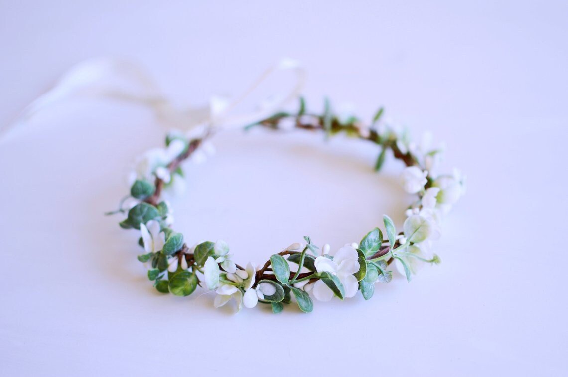 Romantic bridal crown in white & green. Spring inspired hairpiece, very elegant & feminine made with pip berry twigs, eucalyptusand cherry blossoms. Perfect for spring or rustic weddings. The piece is incredibly lightweight & comfortable to wear. Best fit heads over 20″. Secures in the back with white satin ribbons. By purchasing this item you confirm that you have read & accept entire item description & our shop policies. Back to shop: https://www.etsy.com/shop/JeweLLina Note: Real colors may differ slightly from their appearance on your display. Thanks for looking! Eucalyptus Hair Crown, Green Wedding Botanical Rustic Bridal Natural Floral Elegant Wreath, Halo