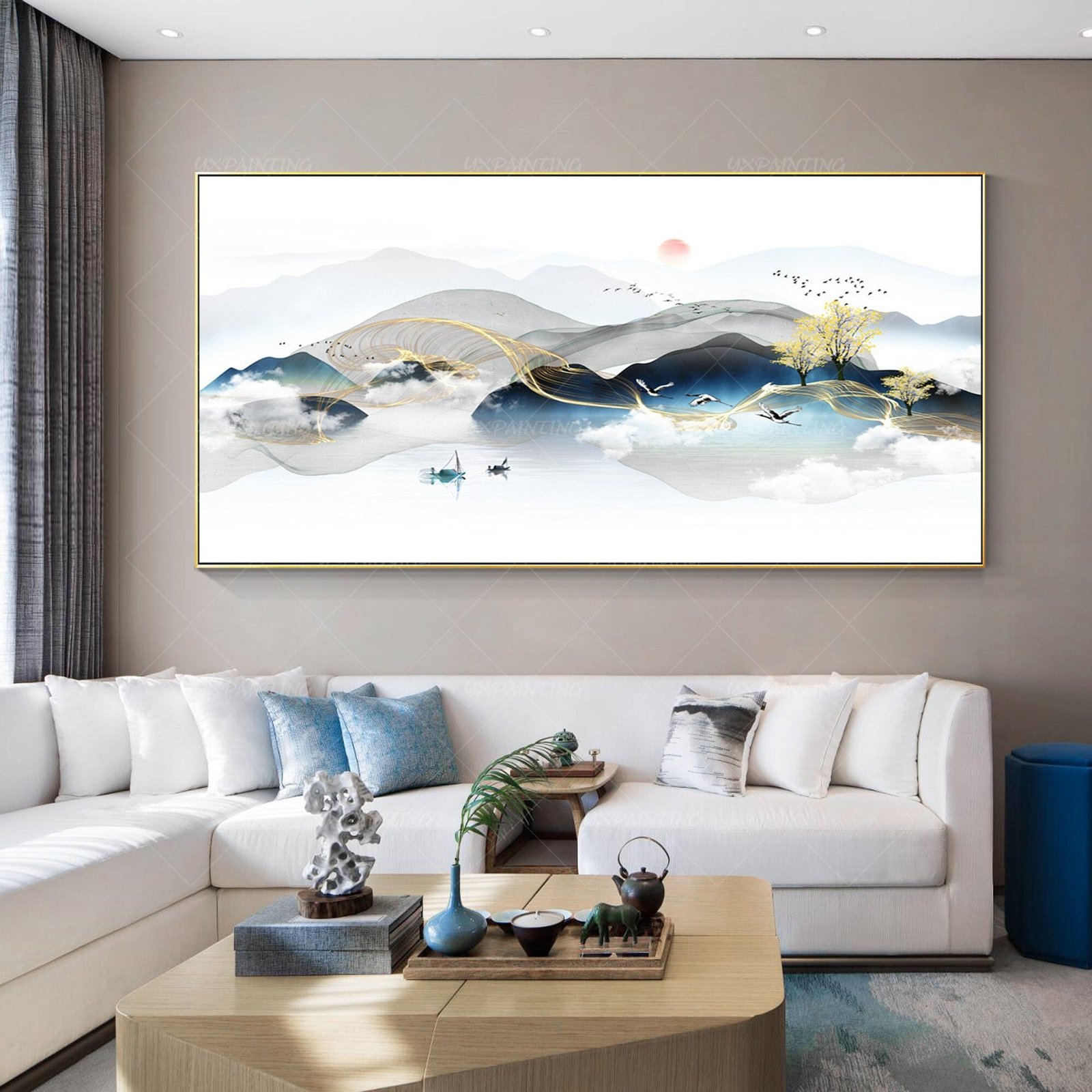 What are the symbols & meanings of mountain landscape painting? Mountains in paintings have been a favorite topic among artist since ancient times. Mountains always symbolize majestic energy, motivational & reaching the top kind of image. Mountains also symbolize constancy, eternity, firmness, & stillness. Mountains are thought to contain divine inspiration, & are the focus of pilgrimages of transcendence & spiritual elevation. Package: Rolled Up(Not Frame): Rolled & shipped in a solid tube Metal Frame: Use the hard box to keep safe. Medium: acrylic painting on canvas by brush Style: mountain landscape Border:The painting with 2-3 inches extra/additional white border around for stretching or framing. To check more nice paintings,here is our store link : https://www.etsy.com/shop/YxPainting Hello,Please spend few minutes to read this: I want you to know that the effect pictures are for reference only, & the picture reality show can reflect the overall effect of handmade painting. Only print painting can be the same as the display. As for hand-drawn paintings, it is impossible to be exactly the same as the display drawings. Each painting is unique. I hope you can understand that our painter’s hand can’t be like a machine, but we try our best to maintain the artistic beauty of the picture. Every stroke shows our efforts. I want you to know that we are trying our best to provide quality customer service. It’s not easy for us, but we will try our best all the time. Because of the distance, the freight is too expensive, so most of the paintings in our shop are not framed. If you want to buy unframed paintings, then frame them locally. We recommend that you consult more information about the frame & the cost at local frame shop to avoid the trouble of buying it later. If you decide to purchase a custom order, please let us know all the requirements, such as size. Please tell us your telephone number for express delivery. Usually, we need 7 days for hand-drawing & 1-2 days for print painting. Once finished, a photo confirmation will be sent to you. With your approval, we will send out the items. We often send UPS express. About three days later, we will send you the tracking number. How long the logistics will be delivered depends on the location & delivery service at different distances. This is a complete process. Please read the relevant information & store policy in detail. I hope we can provide you with satisfactory service, & I hope you can understand us. Thank you Extra Large Mountain Printable Landscape Abstract Framed Wall Art Watercolor Canvas Painting|Flock Of Birds Nature Art Print|Yxpainting