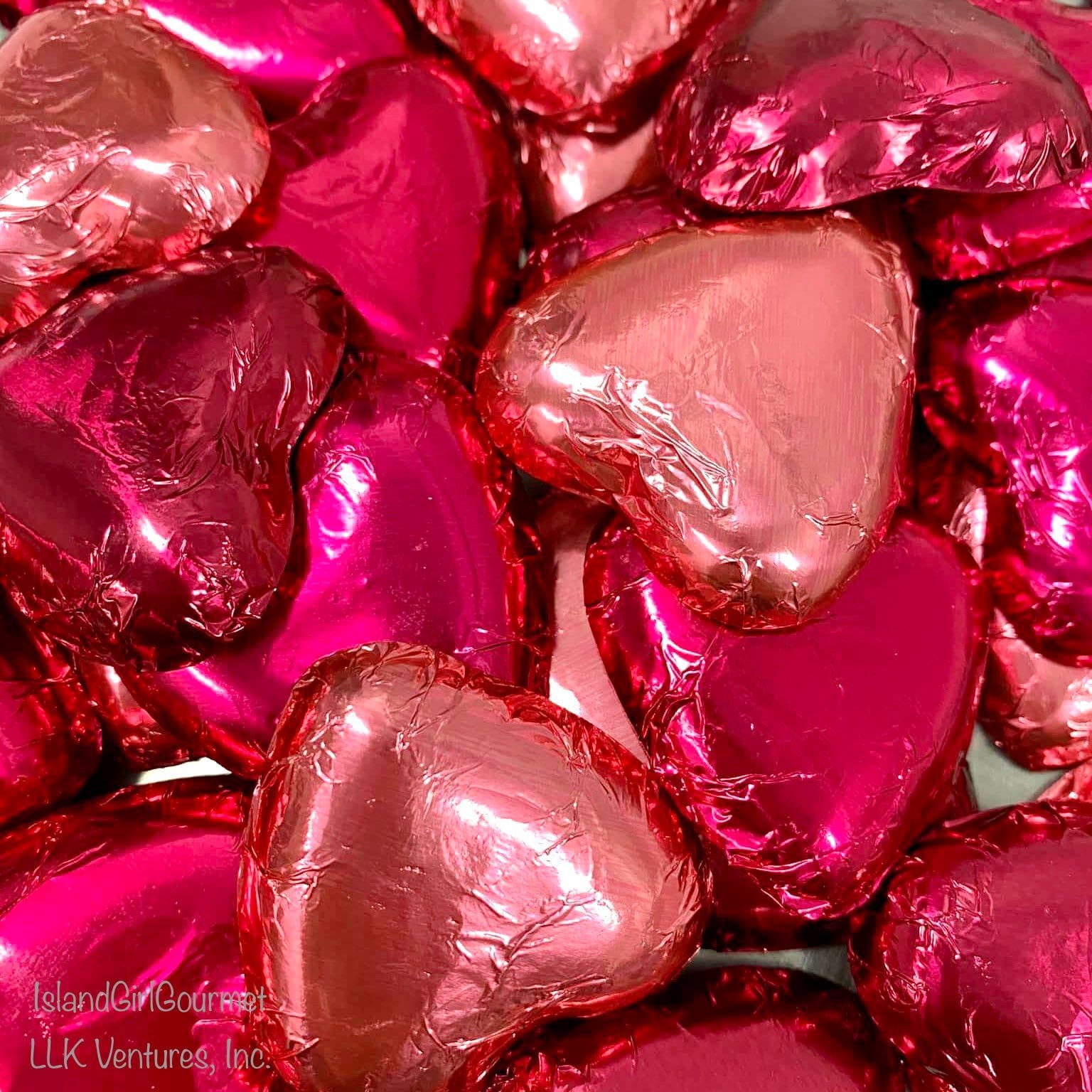 Foil Wrapped Flat Hearts Any Chocolate Flavor, Color, Bulk Box 1/2 lb., Approx. 21 Pcs