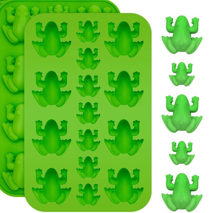Frog Mold-Chocolate, Candy, Jelly & Ice Tray Mold Frog Shape Mold-Passover Silicone Mold Frogs Silicone Mold SILLI FROG, 3-in-1 Mold for Ice/Chocolate/Gelatin. Each biggest frog approximately 1-3/8″ front to back, 1-1/2″ side to side, 7/8″ high. Each small frog approximately7/8″x7/8″x5/8″ One morning when Pharaoh awoke there were frogs in his bed, frogs on his head, frogs on his nose & frogs on his toes. Frogs here, frogs there, frogs jumping everywhere. Have fun with this silli-frog mold by making your favorite Passover treat, refreshing frog ice cubes, delicious chocolate frogs, colorful gelatin frog desserts. Specifications MaterialSilicone ShapeFrogs Oven SafeYes Freezer SafeYes Frozen Frogs Silicone Mold Passover Bake Ware & Ice Tray – This Silicone Can Withstand 260C / 500F Create Frog Shaped Ice, Candy, Chocolate, Gelatin. Use a Spray or Base For No Stick | Food Safe Silicone. This Silicone Mold Can Be Used For Baking, Freezing & Refrigeration. Hand Wash Wish Dish Soap & Warm Water. Frog Silicone Mold 15-Cavity Candy, Chocolate, Jelly, Ice Tray – Passover Treat