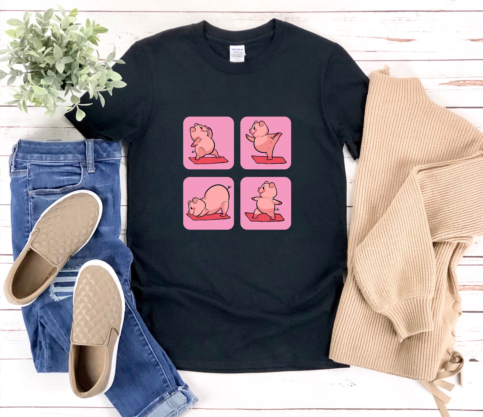 Funny Yoga Shirt, Pig Yoga, Meditation Gift, Cute Workout, Shirt Women Funny, Fitness