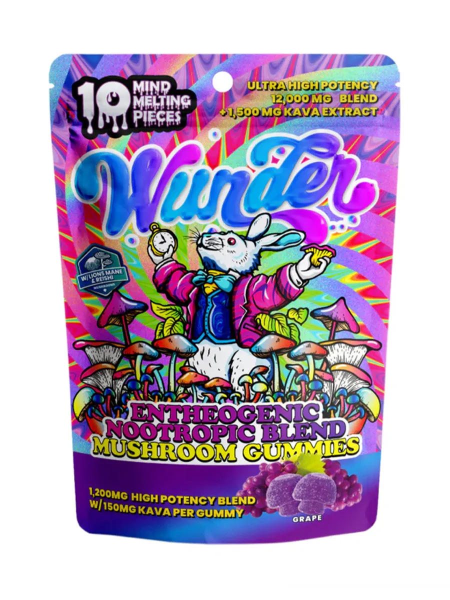 Key Features: Ultra-High Potency Blend – Each gummy is infused with a 1,200mg entheogenic mushroom blend, designed to support cognitive function, focus, and creativity. Calming & Relaxing Effects – Includes ingredients known for mood enhancement and stress relief, helping to promote a sense of balance and relaxation. Delicious Grape Flavor – A smooth and fruity taste makes these gummies a pleasurable and convenient way to enjoy the benefits. Convenient Packaging – Each pack contains 10 gummies for a total of 12,000mg per container, ensuring long-lasting effects and easy daily use. Order now from our online headshop, Olofly, and elevate your nootropic experience with the delicious and potent Grape Wunder Mushroom Gummies!
