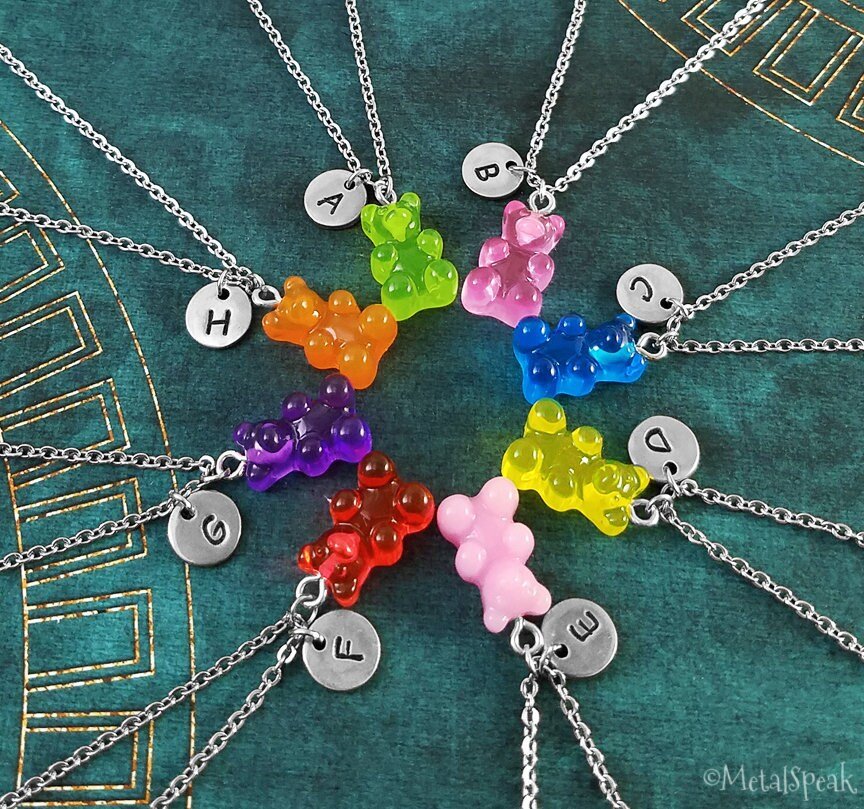 Gummy Bear Necklace Gummi Jewelry Friendship Necklaces Best Friend Candy Personalized Initial Charm