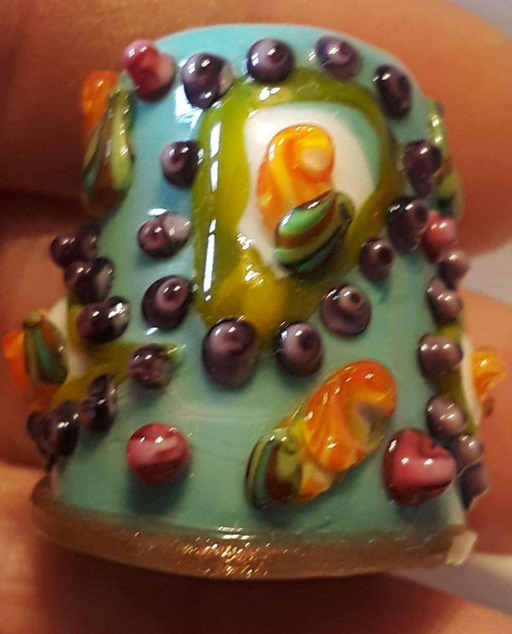 Handmade Lampwork Glass Thimble -Turquoise Paisley – Sra S105