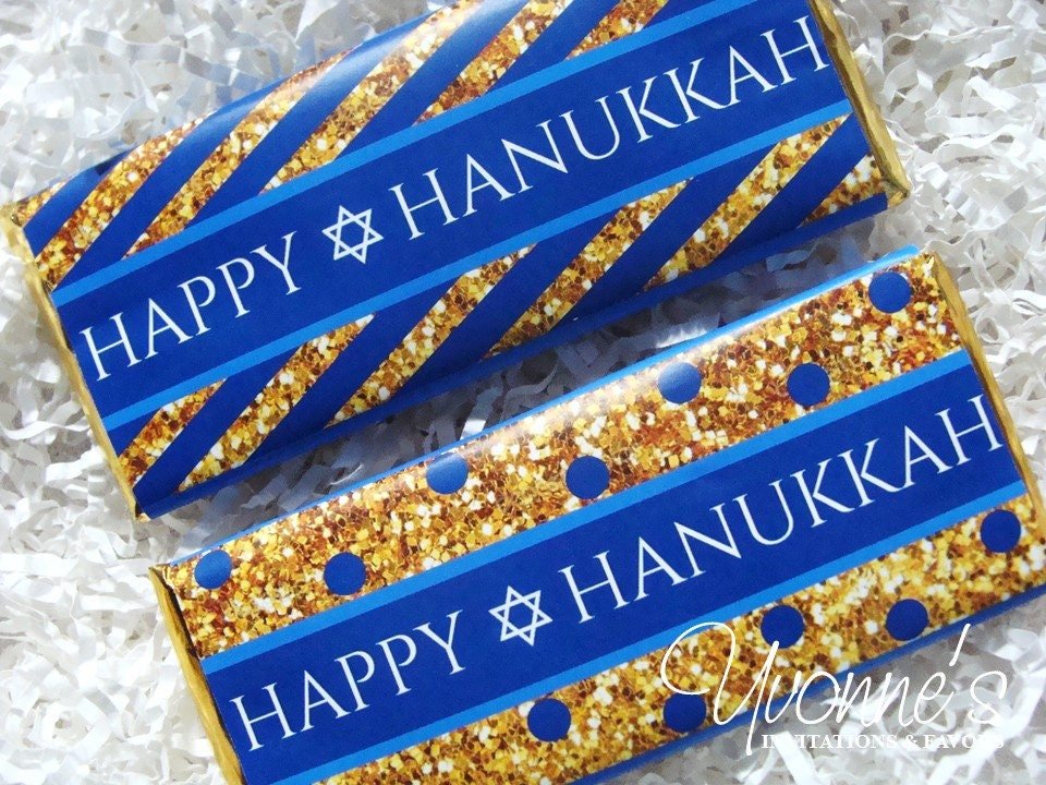 Yvonne’s Candy Bar Boutique can create the most unique party favors for your next event! Our candy bar favors will create a “wow” factor with your guests that will leave a lasting impression. If you don’t see what you’re looking for in our shop, please reach out to us & we will create a design as unique as you! THIS LISTING IS FOR ASSEMBLED CANDY BARS. THEY WILL SHIP ASSEMBLED WITH PERSONALIZED WRAPPER SAVING YOU THE WORK SUmmER SHIPPING: in THE SUmmER MONTHS YOUR CANDY BARS WILL SHIP INSULATED WITH ICE VIA ExPEDITED SHIPPING AT NO ExTRA CHARGE. PRICING: Candy Bars Assembled – $3.25 each WRAPPERS ONLY: To purchase wrappers only, please see separate listing IMPORTANT DETAILS: {1.} This is not a digital file. This order is for assembled candy bar favors to be shipped direct to you with the personalized wrappers already assembled, saving you the work. {2.} The glitter images featured are flat glitter images & not real glitter. {3.} Higher quantities & customizations are available upon request. Please contact us through Etsy convo & we will set up a listing for you to make your purchase from. {4.} At checkout, in the notes section of your order, please provide your personalization details (“from” name for the back or other personalization for the back). Please also provide your event date so that we can schedule timely delivery. {5.} It is important that you look out for a proof after order is placed to ensure accuracy with your order. Delay in responding back to your proof will delay delivery of your order. TERMS OF USE & COPYRIGHT INFORMATION: This item is for personal use only. Yvonne’s Candy Bar Boutique / Yvonne’s Invitations & Favors, LLC. retains all rights. This item may not be copied, shared, forwarded, sold or distributed. Copyright © 2024 / Yvonne’s Candy Bar Boutique LLC. / All Rights Reserved Hanukkah Candy Bar Wrappers Assembled With Chocolate Bars-Hanukkah Party Favor-Chanukah-Festival Of Lights-Blue & Gold Glitter-Jewish Star