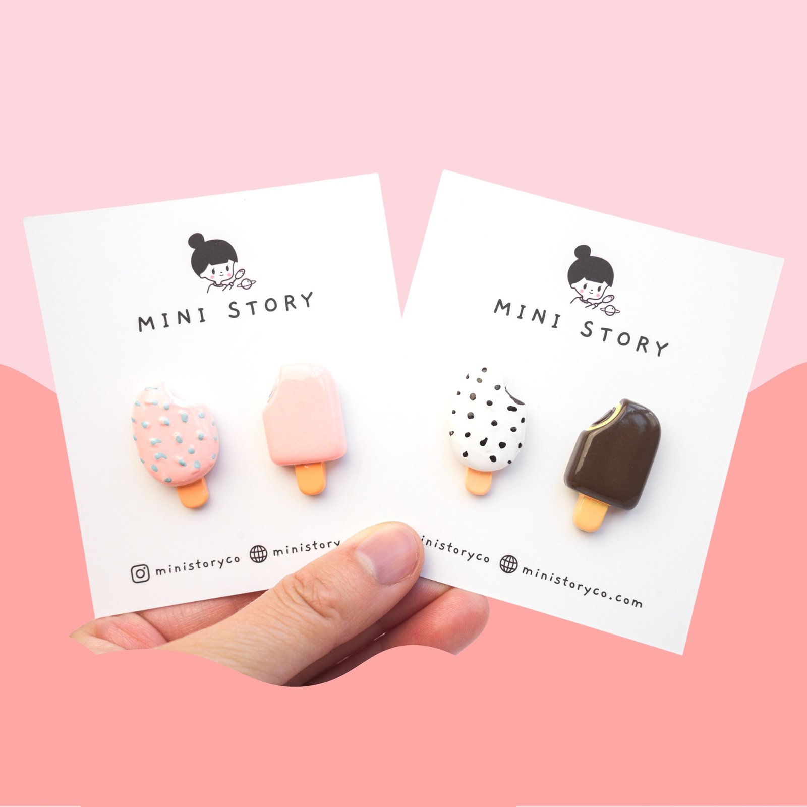 Celebrate your love for frozen treats with our Ice Cream Bars Pin! This adorable brooch looks just like a mini ice cream bar, available in four delicious “flavours” – classic chocolate or sweet strawberry, with options for a textured look with nuts or smooth without nuts. Whether you’re adding a pop of fun to your backpack, hat, or jacket, this cute pin is the perfect accessory for dessert lovers & makes a delightful, playful gift. Each design captures the joy of summertime treats – a sweet little accent for any outfit or collection! ♡ Gift-ready packaging ♡ Lightweight ♡ Ships as a single pin on card ♡ Packaged inside a protective cello sleeve ♡ Made with love & care D E T A I L S ↠ Pin Back: Gold/Silver Butterfly ↠ Pin Size: 0.6″ x 0.98″ (1.5cm x 2.5cm) ↠ Pin Weight: 2.6g S H I P P I N G Order are shipped out within 1-3 business days after the order as been received. All items are quality controlled & checked for any defaults before they are dispatched & delivered to our customers. ↠ FREE US Shipping on orders over $35 USD. ↠ Orders over $75 CAD will be automatically upgraded to Expedited Shipping for free! ↠ Shipping upgrades available at checkout. N O T E Colours may vary depending on the lighting & screen settings. Please message me here on Etsy or through Instagram if you have any questions. I’m always happy to help ♡ C O N N E C T & S H A R E Follow me on Instagram for shop updates & exclusive discounts! IG: @ministoryco Thank you for checking out my little shop! Ice Cream Bars Pin | Popsicle Chocolate Bar Brooch Cute Frozen Dessert Accessory Sweet Gift Pins For Backpack & Hat