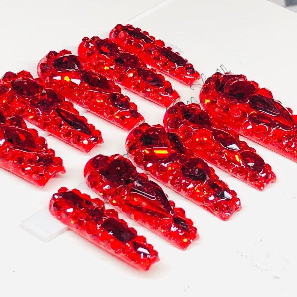 ATTN: LIMITED NUMBER OF SETS AVAILABLE DUE TO HIGH NUMBER OF RHINESTONES NEEDED ❤️ 3 coats of gel plus top coat to ensure strength rhinestone crystal attached with Enailcouture gummy jelly DND, Madam Glam & Makartt Gel Shape: LONG BALLERINA Name : INTEGRITY SIZE : MEDIUM 15468, SMALL 25469, LATGE 04357 or CUSTOM ( leave size in notes ☺️) Be sure to follow me & check back often. New items added daily. Bundles welcome! Happy shopping! ❤️ Integrity – Full Bling Long Ballerina Press On Nails