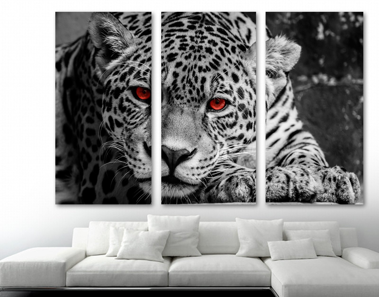Canvas Print of leopard wall art close up portrait with red eyes. This Wall Art Giclee print is great for home or office wall decor & interior design & the perfect conversation topic with friends & family. ➤ ATTENTION ???? Size ordered = TOTAL size of all panels combined ???? All sizes are in Width x Height format ???? TOTAL size = minimum wall area needed to hang ???? Spacing between panels is not counted ???? Recommended 1″ to 2″ space between the pieces ???? Ensure that you have larger wall area than TOTAL size to account for spacing between panels. ???? In-room previews are approximated based on maximum print size. ➤ Example Size Explanation (for Multi-Panel) [60″x40″ | 3P-20x40ea] means [60″x”40 total size | 3 panels – 20×40 each] ➤ Shop with confidence from CANVAS QUEST ✔ Epson Printing Process, best in industry ✔ Genuine Inks (100+ year fade resistance) ✔ Museum Quality poly/cotton Canvas with Satin Finish ✔ 1.5″ Deep, Pine Wood Stretcher Bars ✔ Hand Stretched with precision corner folds ✔ Mirrored edges – image is not lost to the sides ✔ Back Stapled for professional look ✔ Ready To Hang – Saw-tooth hangers on the back ✔ Customizable – Custom text or Black & White Free! ✔ Handmade to individual order! ✔ International shipping available, please contact us ✔ MADE in USA ➤ SATISFACTION GUARANTEED 100% We are Proud to be a 5-Star Seller & Satisfaction is always Guaranteed. We truly want you to be happy with your purchase. Our return policy is simple, if for any reason whatsoever you are not completely satisfied with what you received, just return the product within return window for a refund. ➤ ABOUT CANVAS QUEST® Our canvas prints are professionally hand-stretched & gallery-wrapped at our workshop. We’re small enough to keep an eye on quality & service, but large enough to provide you the best value in canvas wall art. We source our materials from well established local suppliers, bringing you value without sacrificing quality that our artist customers rely on for their Giclée artwork reproductions. Our goal is to exceed your expectations & deliver the perfect canvas for you. Photo to Canvas prints are trendy, especially among art connoisseurs or interior designers for decorating home or office walls. To print your own custom photos, visit us at CanvasQuest.com ➤ HOW TO ORDER 1 – Select Number of Panels 2 – Select the TOTAL size ➤ Got an idea? We’ll be glad to work with you to modify this or any project you have in mind. Leopard Wall Art Portrait Red Eyes Canvas Print. Jaguar Print, Wild Animal Art, – Giclee Home Decor, Interior Design
