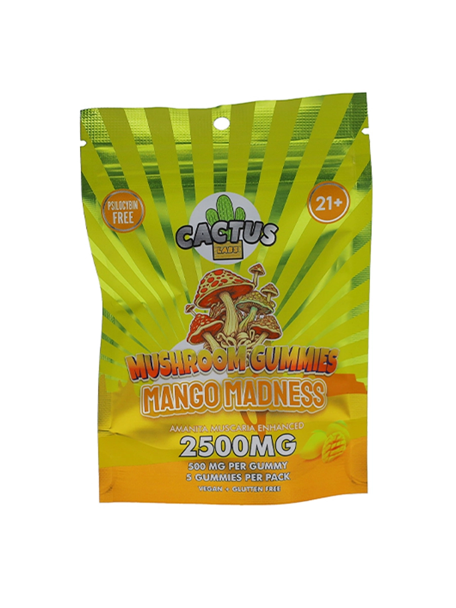 Cactus Labs has expanded its range of flavors to include Mango Madness and other fruity flavors like watermelon, strawberry, blueberry, and a variety pack. Each 5ct bag contains a total of 2500mg of active ingredients. Mango Madness Cactus Labs Amanita Muscaria Mushroom Gummies is the most potent Amanita product to date. Order now Mango Madness Gummies from our online headshop with just a simple button click. Experience the power of Cactus Labs Amanita Muscaria Mushroom Gummies.