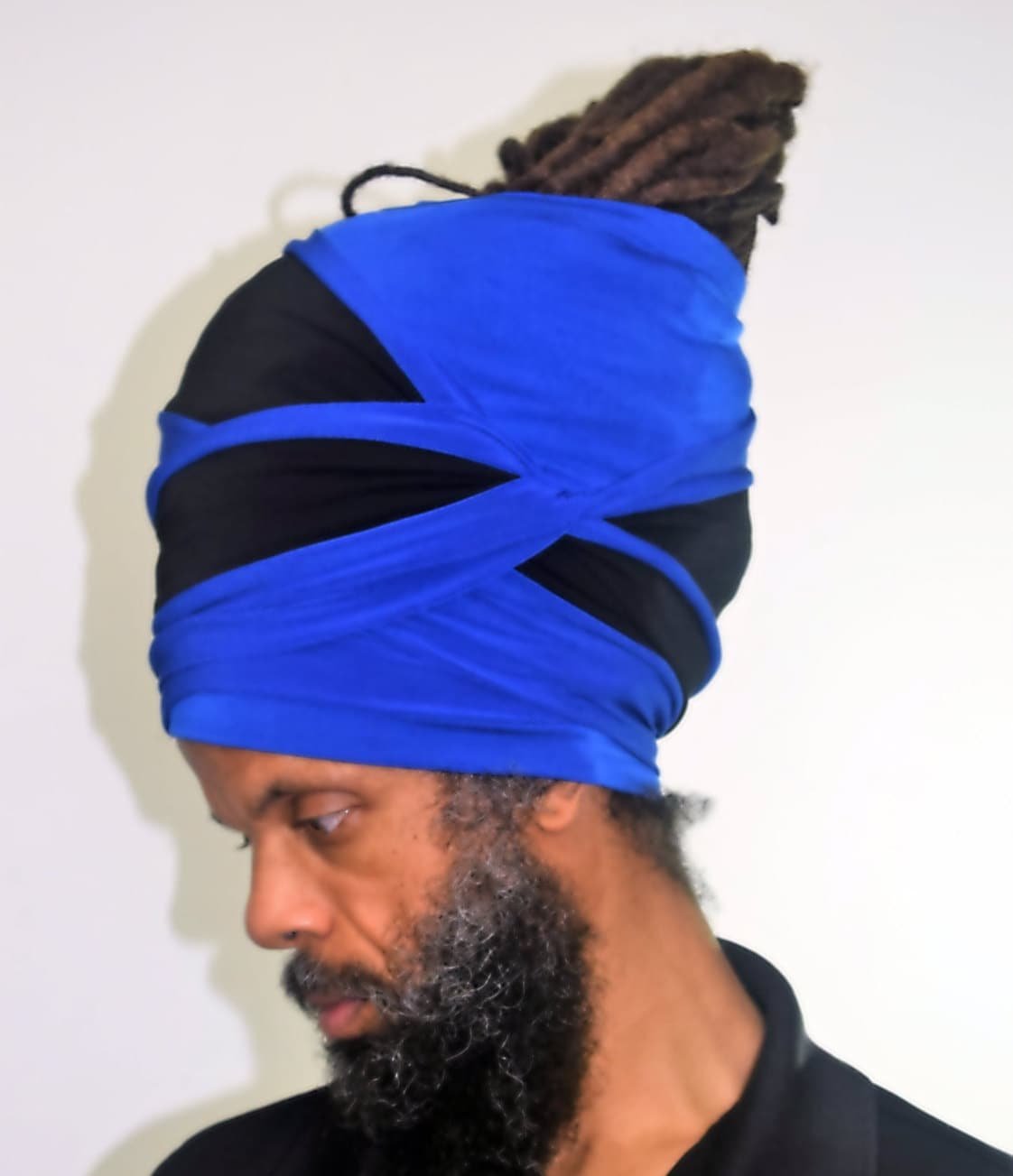 Men Royal Blue & Black Tube Wrap -Men Hats – Dread Locs Hat – Turban – Choose A Length