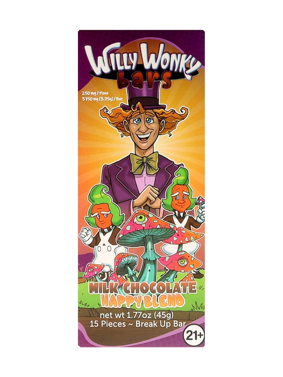 Immerse yourself in the velvety indulgence of Milk Chocolate Willy Wonky Happy Blend Bars. Crafted with the finest milk chocolate, each piece is a celebration of smooth, heavenly goodness. Infused with Happy Blend mushrooms, the bar contains 3750mg, with 250mg per delightful piece. Tailored for microdosing, enjoy 1-4 pieces for a gentle, euphoric lift. With 15 pieces per bar, it’s not just a chocolatey treat but also a journey into happiness, seamlessly blending the joy of milk chocolate with the wellness benefits of Happy Blend mushrooms. Key Features 1 Piece = 250mg (1/4 grams) of mushrooms Microdose: 1-4 Pieces (Stimulate the mind, energy, focus, clarity) Therapeutic: 5-8 Pieces (Mindful and elevated) Enlightened: 9-15 Pieces (Psychonautics)