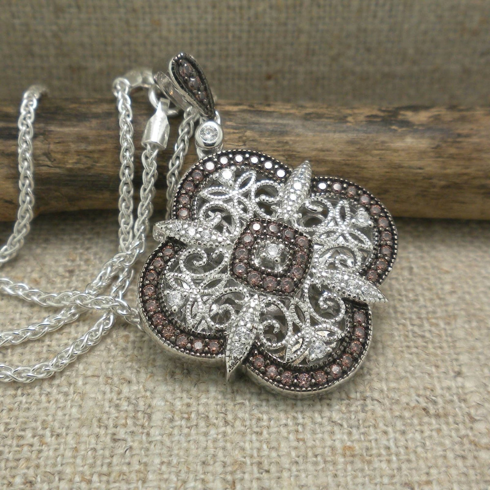 Night & Day Scalloped Celtic Knot Pendant Trinity Knots With White & Chocolate Czs By Keith Jack Jewelry 18″ Chain Gift Boxed