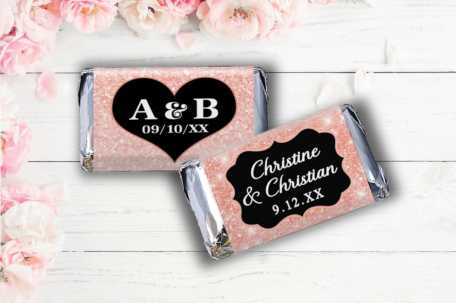 Personalized Chocolate Wrappers – Faux Glitter Heart Stickers – Personalized Nugget Wrappers, Miniature Chocolate Wrappers 1 Sheet of labels = 21 wrappers Capture the attention of your guests with our Nuggets or Miniatures Wrappers! They are an adorable way to make an exciting announcement or express your gratitude to your guests! A unique wedding, bridal shower, graduation or birthday party favor, these chocolate wrappers will make any candy bar a special memento that everyone will be sure to love! The Wrappers can be personalized with up to two lines of text on glossy labels & a special message can be displayed on the back. As always, personalization is free! A proof will arrive in your email within two business days from receipt of the order. Please preview this proof & let us know if you would like any changes or if its okay to make the order. HOW TO PLACE AN ORDER 1. Select quantity of 1. 2. Select total quantities needed (pricing & quantity & are shown in the drop-down menu.) 3. Add the product to cart 4. in the “Notes to Seller” box, enter the personalization as you would like it on the label For Wrapper Design Wrapper Color: Artwork mock up shown in faux gold glitter Wrapper Color: Gold Font Style & Imprint Color (if different) Heart Color: White Initials: Date: message for back of wrappers 4. Checkout Etsy Message us your photo – PRODUCTION FACTS – Label Size: Miniatures Size: 1.75″w X 1″h (approx.) Label Size: Nuggets Size: 2.62″ x 1″h (approx,) Production Time: Usually ships in 1-3 business days Please etsy message me if your including an image for your design Need a different quantity? Click on the “Pricing & Quantity” tab to select exactly what you need. Returns & Replacements Policy We guarantee your 100% satisfaction & understand that sometimes returns have to be made. If the return is being made due to an error on our part, please contact us. We’ll do whatever it takes to make the situation right! This is our promise to you. If the return is being made simply due to a change of heart, we’re happy to accept your products as long as they are unopened, unused & non-personalized, preferably within 30 days of the purchase date. Great Little Favor Co does NOT accept returns on personalized items, edible products, candy, or tins. This includes tins that were shipped without labels attached. Postage for return shipping is your responsibility, make sure to ship the package back to us in a secured box, insured. Exchanges (Defective/Damaged Products Only) 30 Day Exchange Policy – Defective Products Only We guarantee our personalized products to be free of manufacturing errors or product defects. If there is a quality issue with your order, you may return it in new condition & in its original packaging for a prompt exchange for the same item or immediate full refund once returned. Understandably, personalized items cannot be accepted for return unless there is a manufacturing error or product defect. All refunds or exchanges must be made
