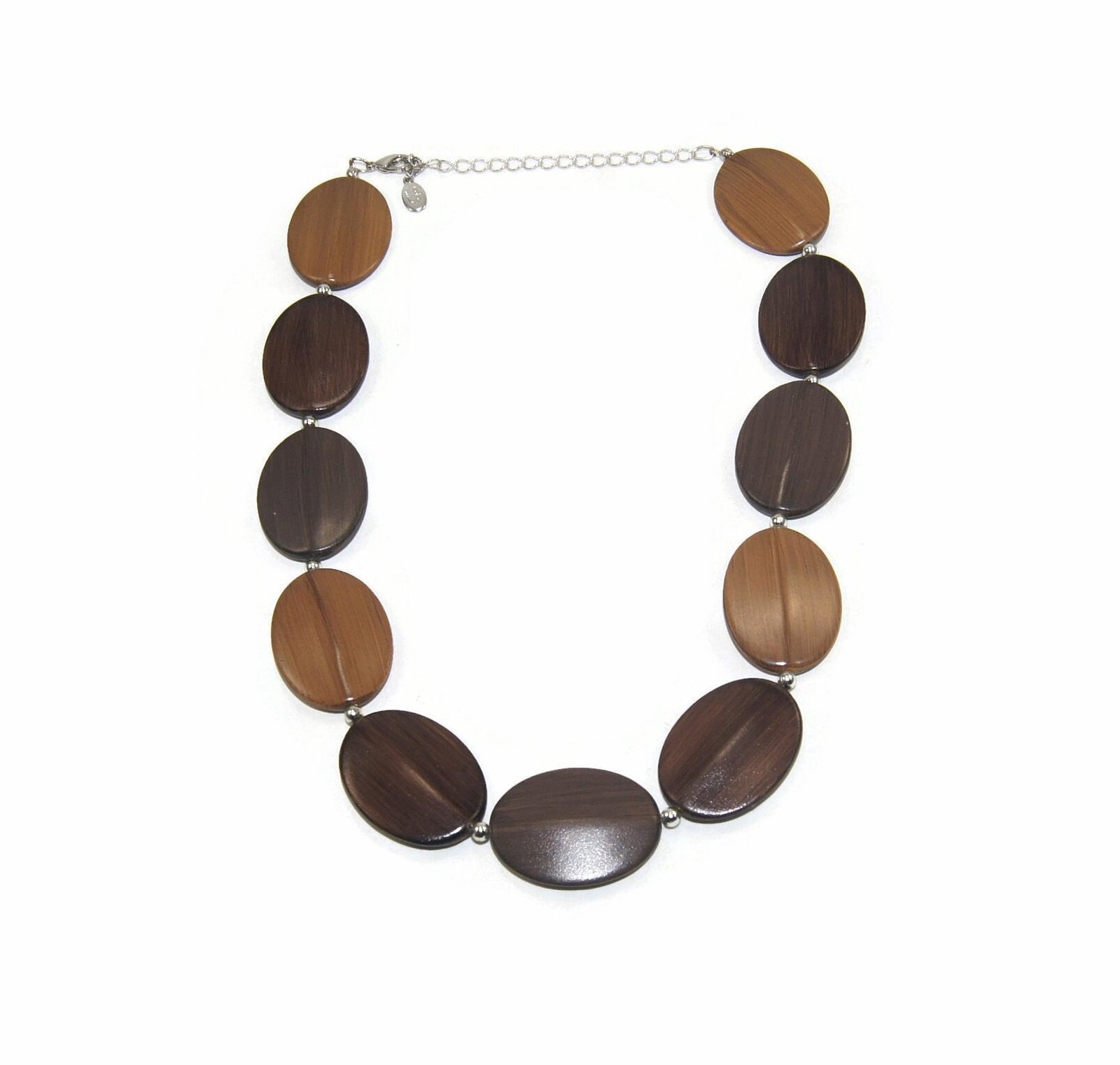 Pristine Vintage Cookie Lee Silver Tone Metal & Faux Wood Beaded Necklace. Hallmark Tag