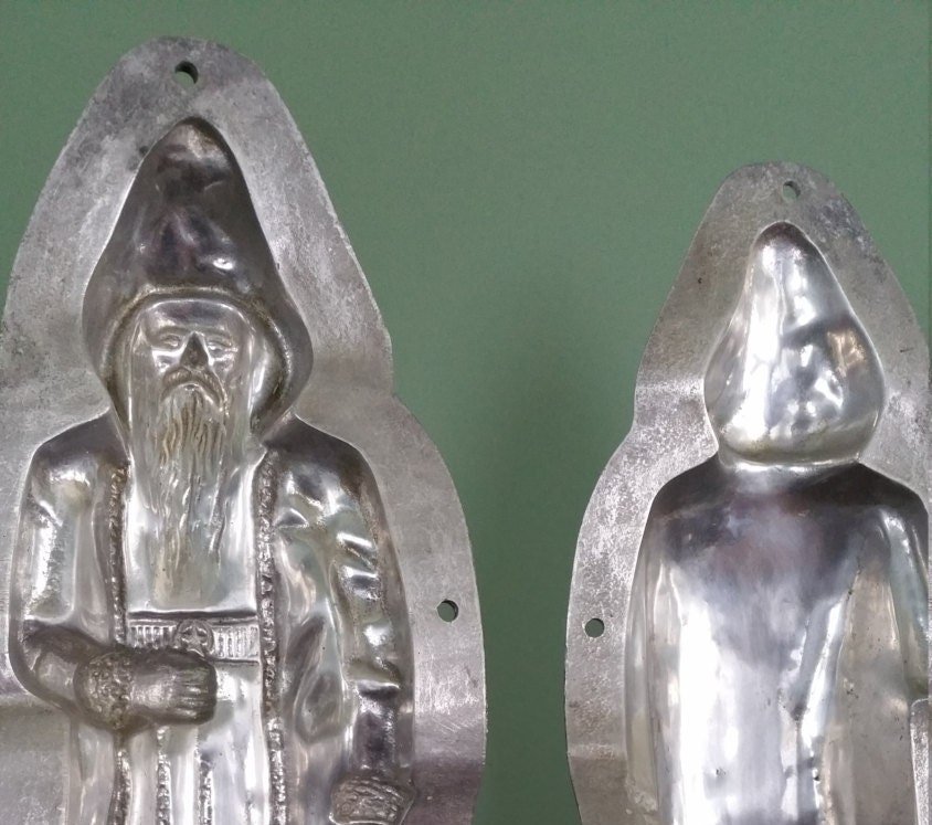 This Rare & Gorgeous Santa Antique Chocolate Mold will be great for display or use…please examine photos for condition – as it is an antique & shows appropriate wear for the years. Rare offeringdon’t miss it! German Window Display Candy Store Santa Antique Chocolate or Ice Cream Mold HUGE 20″ TALL This Mold is Heavy & looks more like & ice cream mold from the outsidebut- inside is more of a chocolate mold-one photo shows a close up of seams inside-I do not believe they are repairs-they appear to be original. Sale price – 5, 000 Please check my shop for other Antique Chocolate Molds & must haves :) Rare French Santa Ice Cream Or Antique Chocolate Mold – Huge 20″ Tall Sale