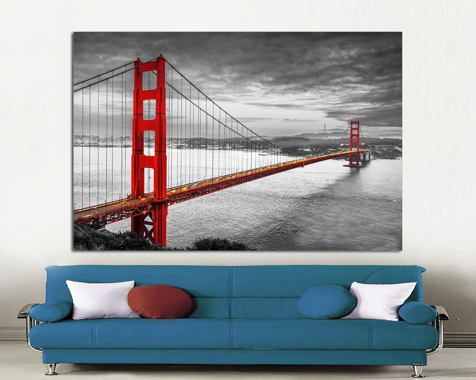 San Francisco City, Golden Gate Wall Art, Bridge Print On Canvas, City Panoramic Canvas Ready To Hang