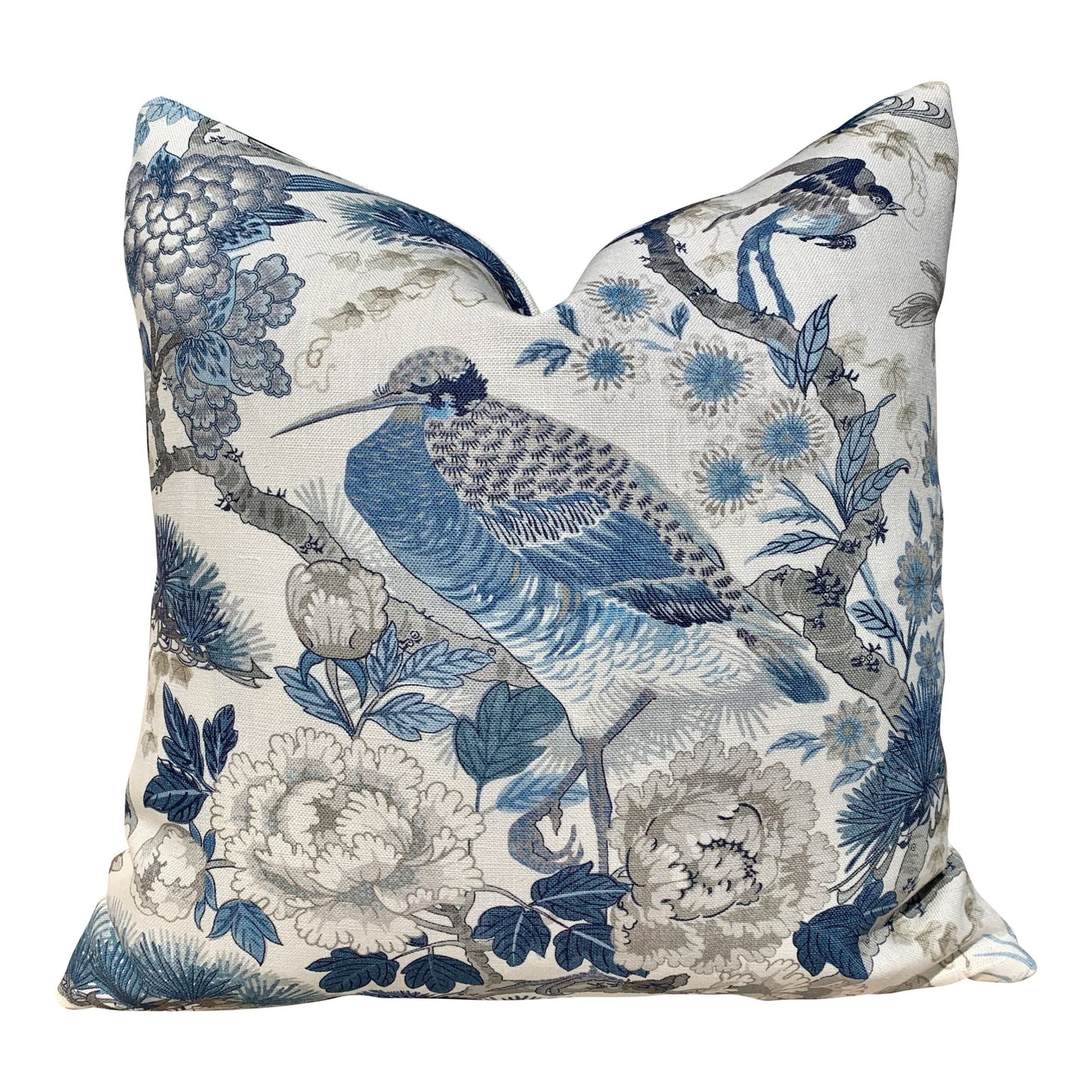 For Fabric Swatch Order Please Follow Link Below: https://etsy.me/3GIH3M4 Scalamandre Shenyang Decorative Linen Pillow in Porcelain Blue. Chinoiserie Accent Linen Pillow Features Bird & Floral Print in Shades of Blue on Light Cream Background. Based on an archival English textile painting, this lovely chinoiserie print decorative pillow cover of flowers, branching pine trees & exotic water birds has a timeless & classic look. – Scalamandre High End Textile, 100% Linen. – Pillow Inserts are optional, Down Alternative, made in USA, could be added in Finish Drop Down Menu. – If Pillow Cover Purchased with Pillow Insert, Pillow Insert Will be 2″ Bigger than Cover. – Solid Cream Linen Fabric Is used on the Back of the pillow. – Double sided Pillow is Optional & Could be selected in Size Drop Down Menu. – Zipper installed on the bottom of the back side of the pillow. – Self Pipping. – All edges are serged to prevent fraying. – Machine wash in cold water with mild detergent. – Air dry only. – Do not dry clean. Scalamandre Shenyang Pillow Porcelain Blue. Designer Pillows, High End Linen Pillow, Decorative Cushion Cover, Accent Throw Pillows