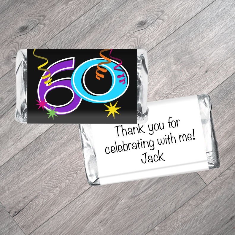 Sold in sets of 42 Mini candy bar wrappers, created to fit Hershey’s® Miniatures™ The age can be changed on request. LABEL ONLY ORDERS INCLUDE: – 42 mini personalized candy bar labels LABELS + CHOCOLATE ORDERS INCLUDE: – 42 pre-assembled Hershey’s Assorted Miniatures with personalized label PERSONALIZED INFO NEEDED: Wrapper Front: – Include the age Select the wrapper back – Wrapper Back A: – Change the name Wrapper Back B: – Your own personalized message THE DETAILS: – Printed on high-quality glossy sticker paper, just peel & stick – This is NOT a digital file. We print & ship Coordinate with our matching standard size candy bar wrappers. https://www.etsy.com/listing/218256612 ©2024 Candy Bar Wrappers LLC – candybarwrappers.com All HERSHEY’S® trademarks, related trade dress & copyrights are owned by The Hershey Company or its affiliate, Hershey Chocolate & Confectionery Corporation, including HERSHEY’S®, MINIATURES™, KISSES®, & REESE’S®. There is no affiliation between The Hershey Company, Hershey Chocolate & Confectionery Corporation, its divisions or subsidiaries, & Candy Bar Wrappers LLC. We simply create candy bar wrappers that are formatted to fit Hershey’s chocolate (because we love them!). Set Of 42 – Confetti Miniatures Candy Bar Labels 30Th, 40Th, 50Th, 60Th, Any Age Adult Milestone Birthday Favors For Miniature Chocolate