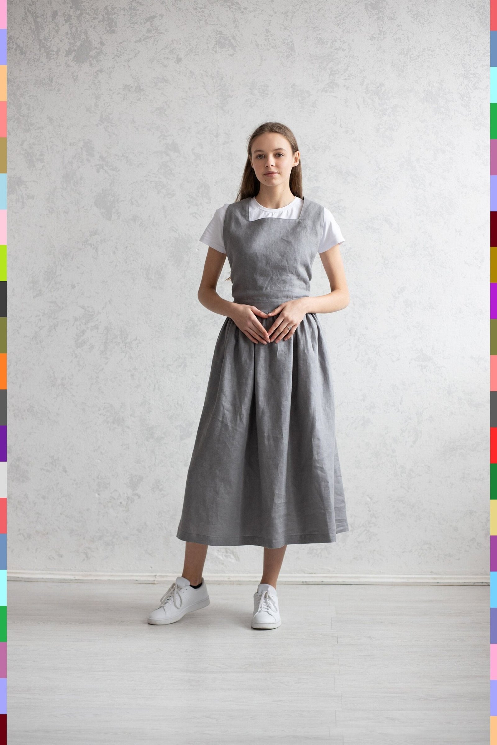 Linen dress from linocolore. 100% pure Italian linen. One of the finest linen in the world. Rich silky velvet feeling. Extra soft with natural wrinkles. Double stonewashed (before & after the order is made). Medium weight. OEKO TEX 100 certified. This item color is Gray Other available colors are (see color chart in photos): – White – Black – Natural – Gray Dark – Blue Light – Purple Light – Lemon – Terracotta – Khaki – Blue Dark – Green – Brown Light – Red – Pink Light – Blue – Pink – Sand – Gray – Gray Light – Aquamarine – Violet – Gold – Salmon – Chocolate Available sizes (see size chart in photos): XXS, XS, S, M, L, XL, XXL. Other sizes or made-to-measure can be made in 2-5 days. This item is in size S. Our model wears size S & she is 175cm (5’9″). Request a custom order by contacting us: – to make item length shorter, longer, or for a specific height – to make any other changes Handmade just for you & ready to ship in 2-5 days. Worldwide shipping options (you choose in the cart): – standard (5-12 days) for free – express (1-3 days) for $48 Please contact us to receive an extra assistance & discount if you are: – planning a wedding – wholesaler Easy linen care: – machine wash (50Co or 120Fo) – dry or iron at low heat Wrinkle control (since our linen is 100% pure Italian linen, you can control wrinkles on your items) WASH + DRY = WRINKLES (relaxed) WASH + IRON = NO WRINKLES (formal) Welcome to our Etsy store. We are a family studio of made-to-measure clothing from world’s best linen since 2011. Each linen is handpicked in linen mills in Italy & prepared in our studio by our unique technology. Each order is handmade individually with exceptional quality. +1000 items to choose from in our shop: www.etsy.com/shop/linocolore Silver Dress. Gray Linen Wrap Apron Elegant Clothing. Original 100% Pure | Italy