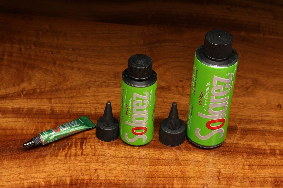This is Solarez Flex. Flex offers the user the ability to have the cured resin become flexible. Many resins dry hard, this resin allows you to use on things like fabric, waders, cloth, jackets or clothes. Will create a permanent flexible bond. The resin does need to be exposed to a curing light or UV light to create bond. Glue remains tacky until cured, when completely cured, the surface is not tacky, sticky or gummy. Made in the USA. Solarez Flex Uv Resin