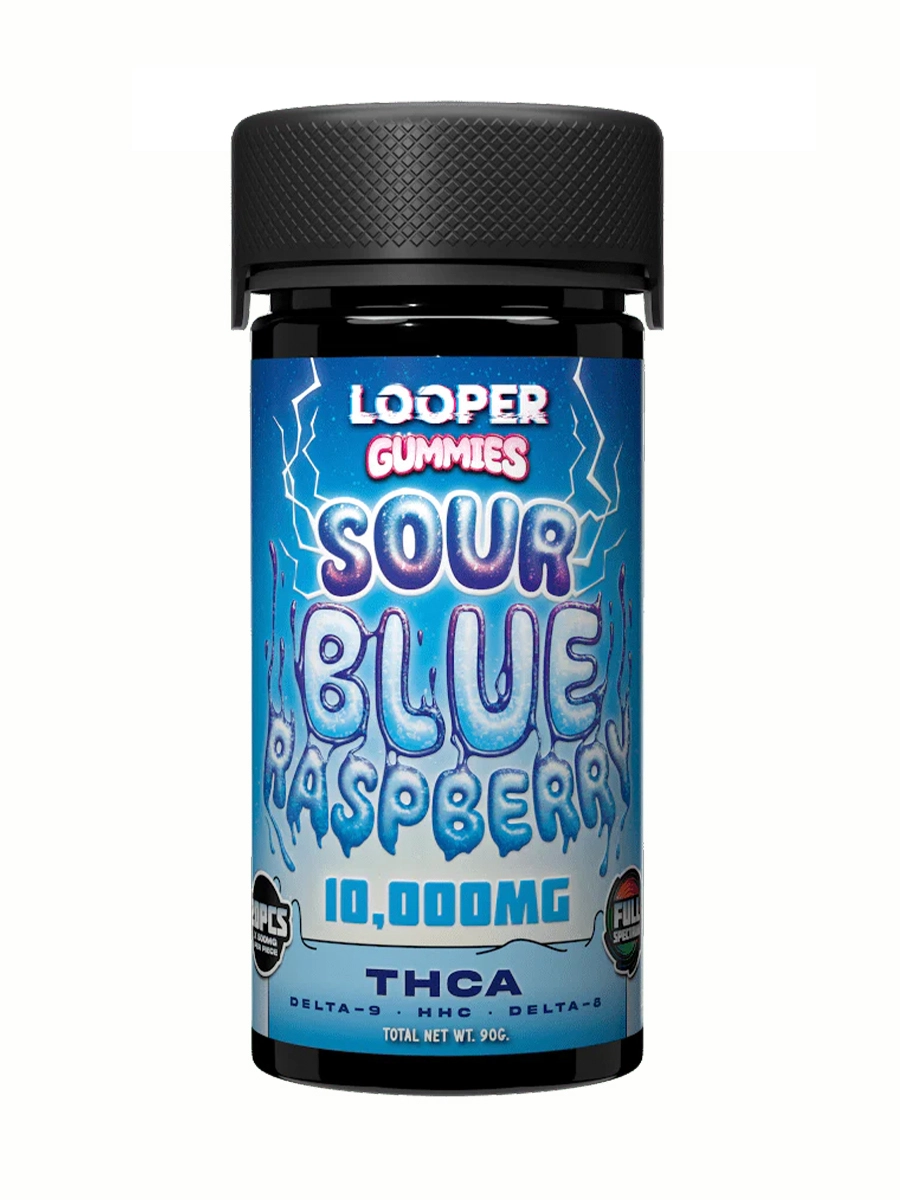 Sour Blue Raspberry Looper THCA+Delta-8+HHC+Delta-9 Gummies 10 000mg