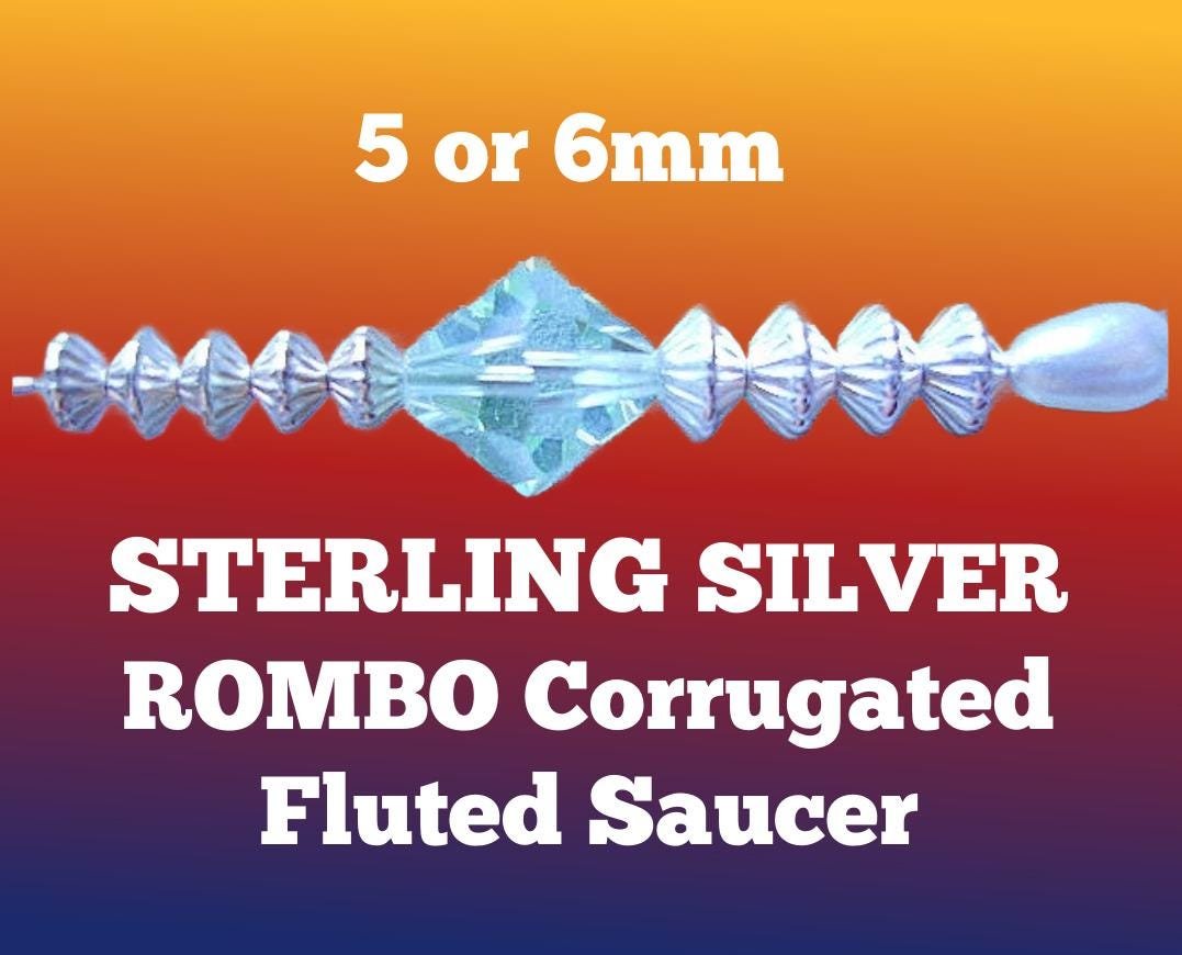 sterling Silver Saucer Bead Corrugated Fluted Rombo, 4.6mm/5.9mm